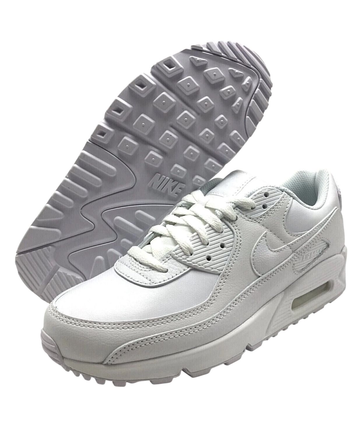 Size 11 - Nike Air Max 90 LTR Leather Triple White Swoosh AM90 NEW!