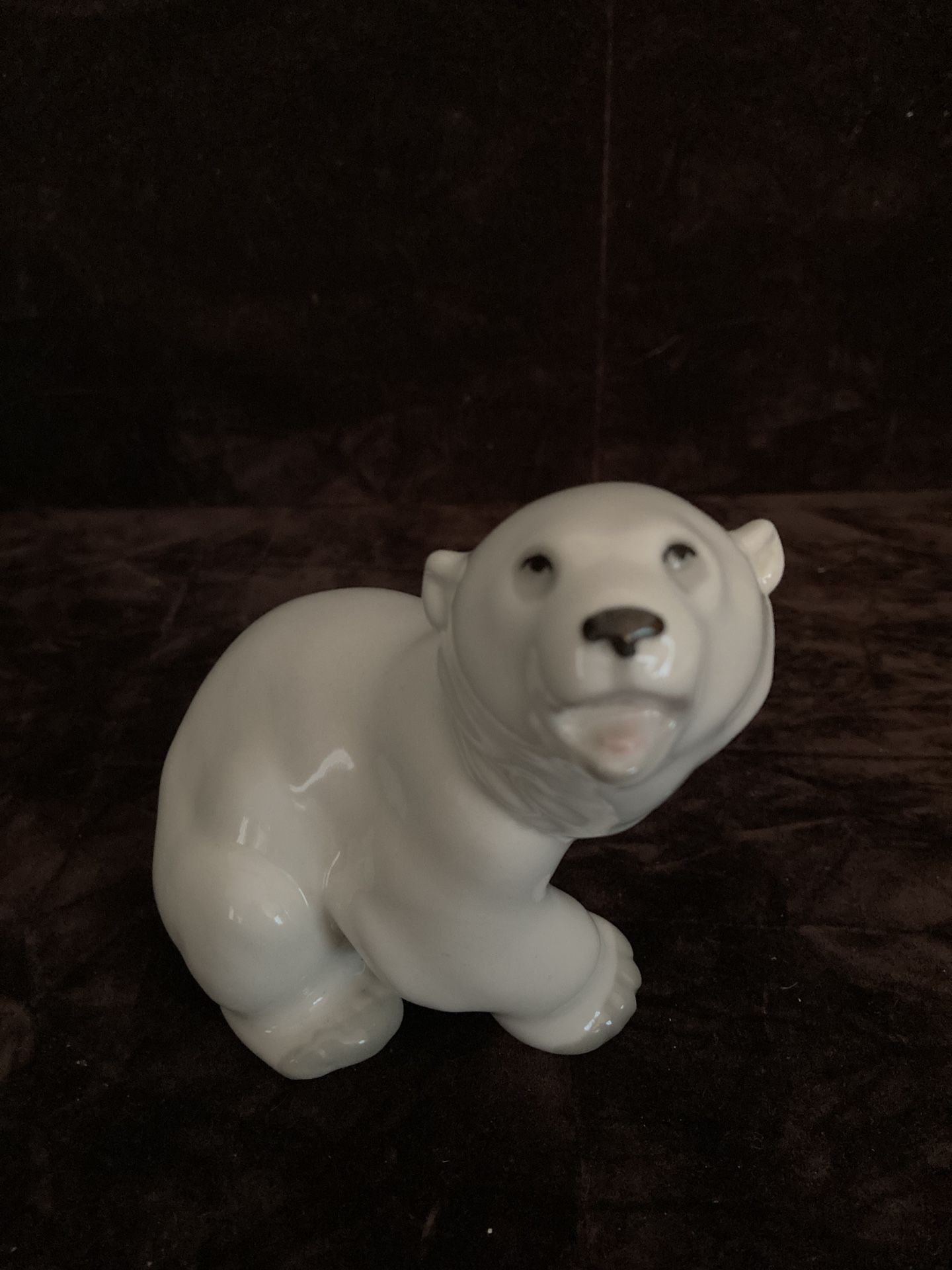 Vintage Lomonosov Porcelain Glossy Polar Bear Figurine Statue, made in Russia. Excellent condition.