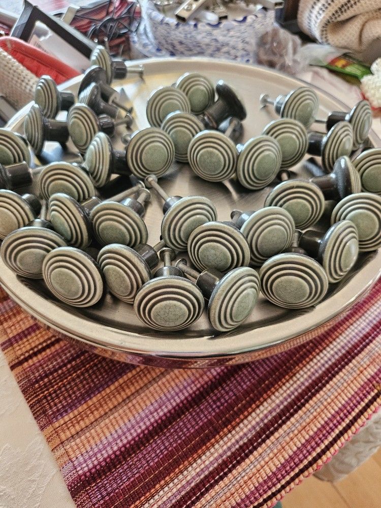 Green ceramic cabinet knobs. 38 pieces. Very good condition.