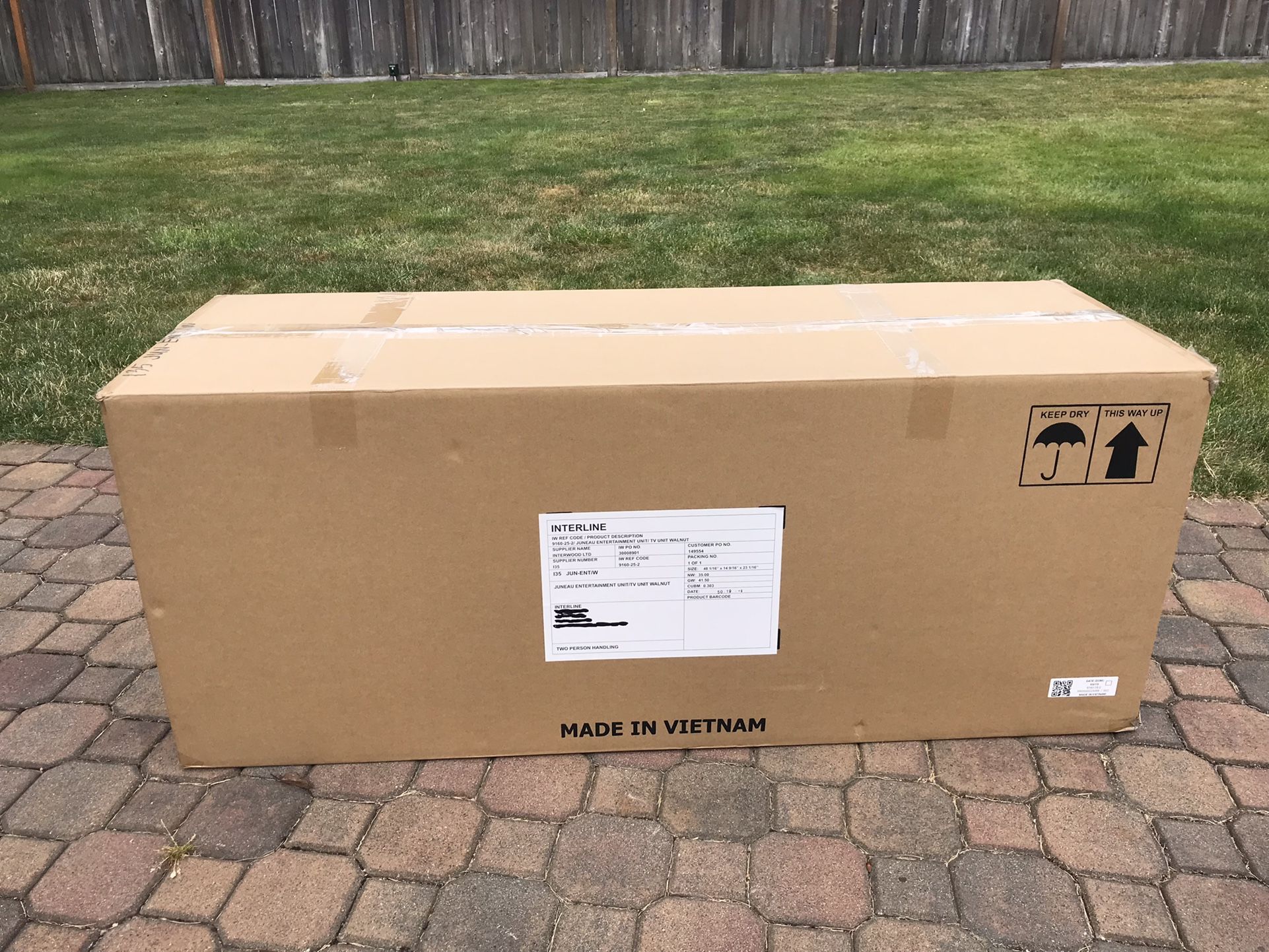 Entertainment unit tv stand. Never used, still in box. Brand new. Box was opened to show the inside. Comes with the instructions. $60