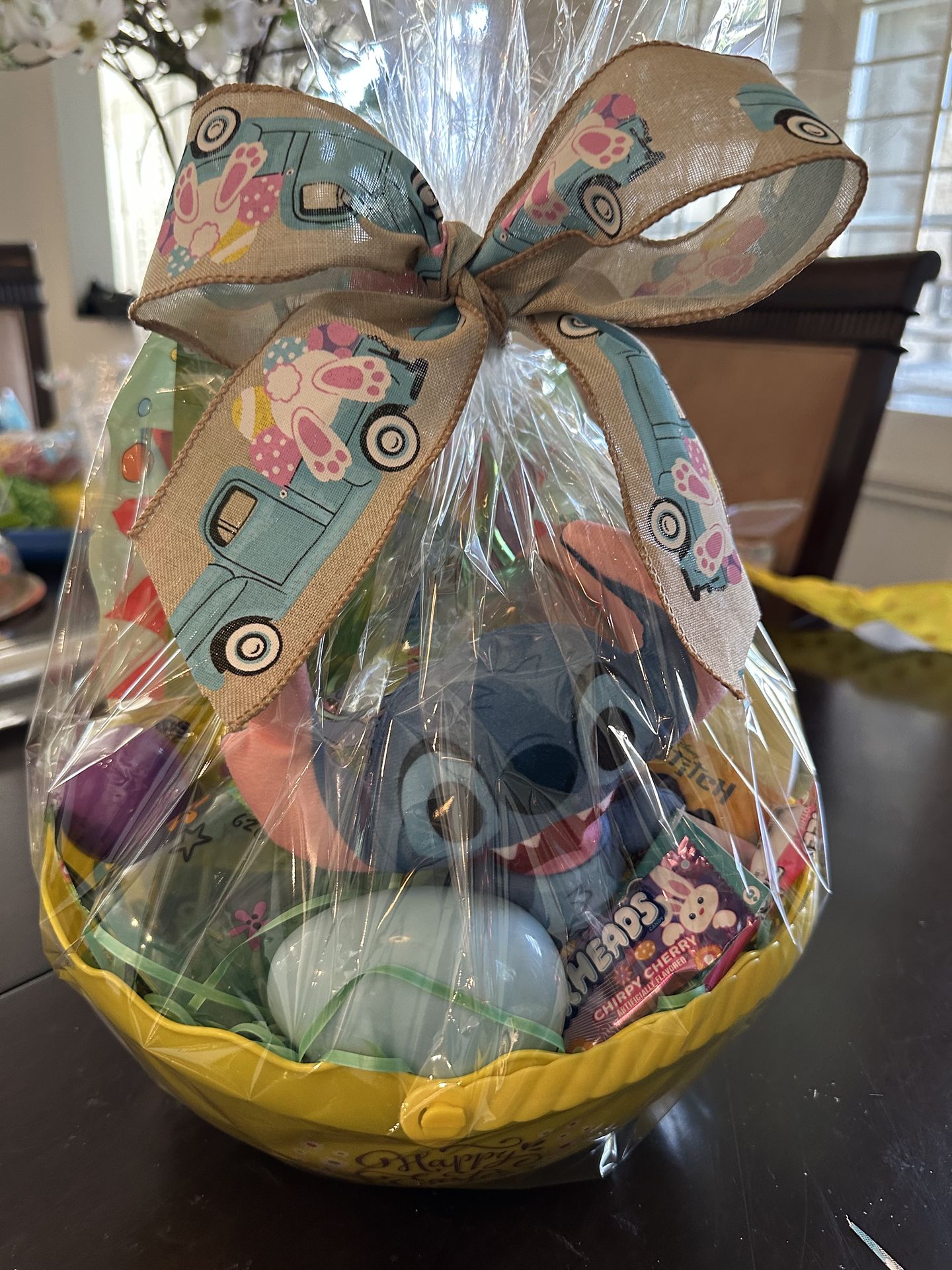 Easter basket Lilo & Stitch, plush, large egg activity stickers, water bottle, multicolor pen, activity grab bag, candy, no holds