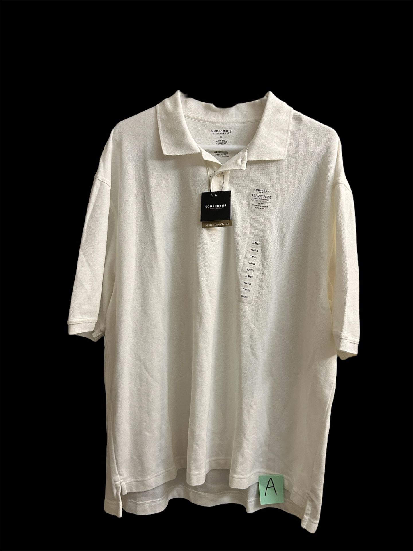 Descriptions: (A) - The 1st item: “NWT Consensus Sportswear White Size XL 100% Cotton Short-Sleeve Polo Top” * Comfortable. Casual. Classic. * Fade, shrink and pill resistant * Outstanding quality and construction * Tag Free (B) - The 2nd Item “NWT Van Heusen Air Cooling Zone Size M Classic Fit Cotton/Polyester Gray Polo Top” * Tag Free * Natural stretch * Temperature activated air cooling zone * Bottom 2” “V” cut sides Be sure to follow me, to keep updated on new clothes added.