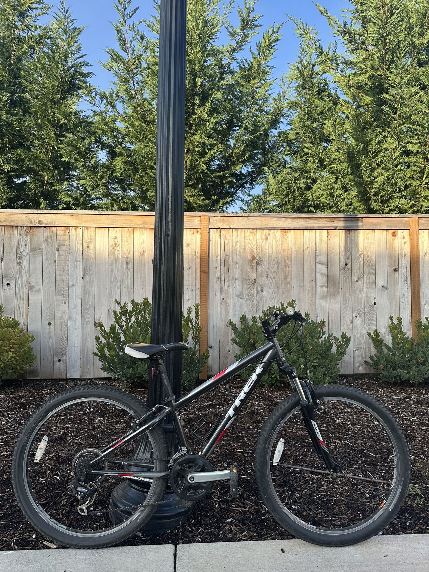 Reliable and easy-riding mountain bike β great for beginners, teens, or shorter riders. π§ Specs & Features β’ Wheel size: 26β β’ Frame: Aluminum β’ Frame size: 13β (33 cm) β’ Suspension: SR Suntour front suspension fork β’ Drivetrain: Shimano 21-speed (3Γ7) β’ Extras: Bottle holder, kickstand π Rider Height β’ Best fit for riders approx. 4β8β β 5β2β (142β157 cm) Good all-around bike for neighborhood riding, bike paths, and light trails. Solid Trek quality and easy to maintain.