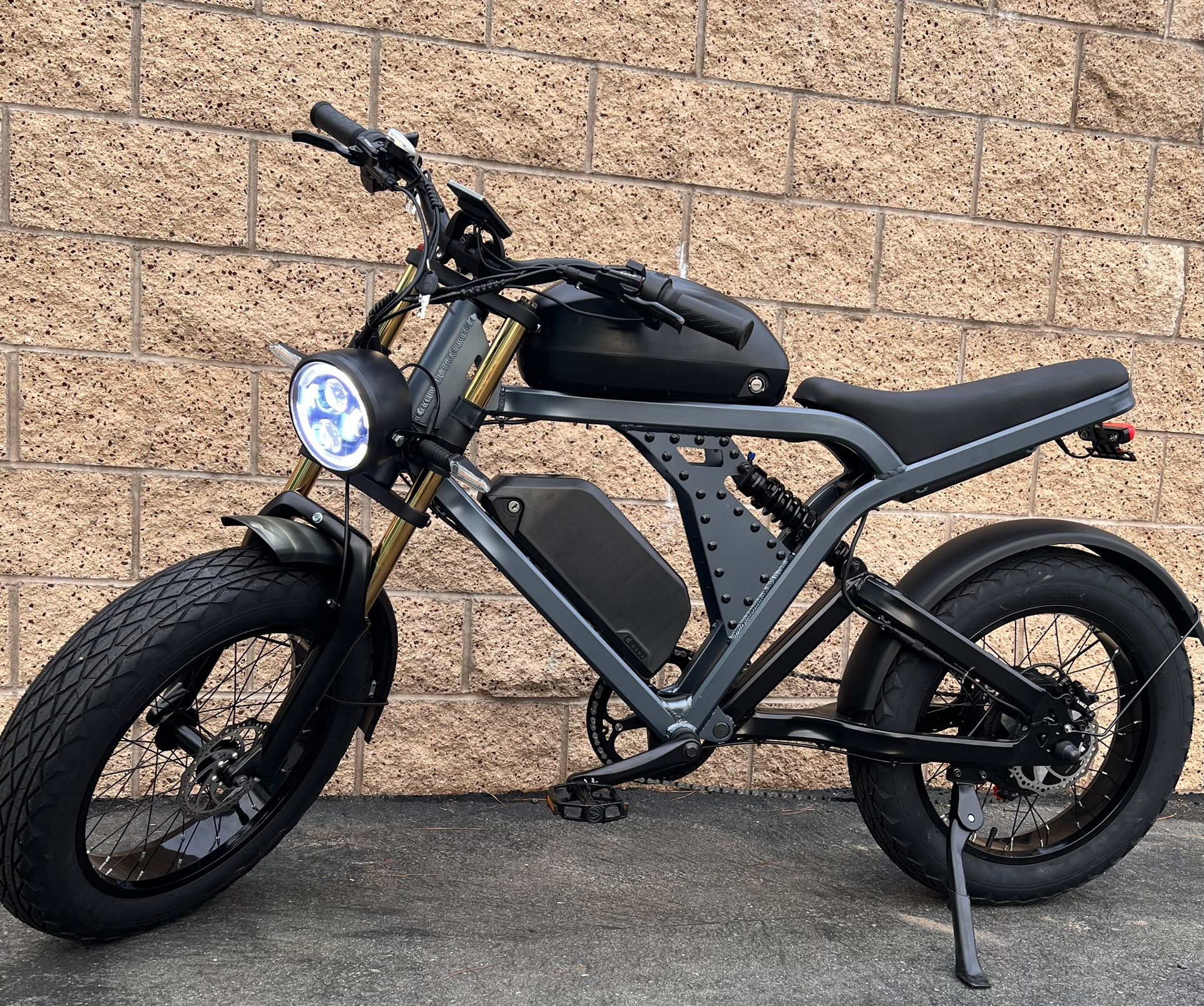 1500W/ 3000W Peak Motor / 48V System Twin/Dual Batteries 41ah total (Removable) 40 mph Max Speed 35-50 Mile Range Full Suspension Adjustable Front Fork and Adjustable Rear Shock Hydraulic Brakes Gray or Red Color Frame Bench Seat Headlights Blinkers (Front and Rear) Horn 2 Chargers Manual Free Lock Tool kit 5β3-6β3 Rider Street Tires 20x4.0 Fat Tire π Twist Grip Throttle 7 Speed Shimano Gears / Derailleur 5 Speed Pedal Assist Odometer Trip-o-meter