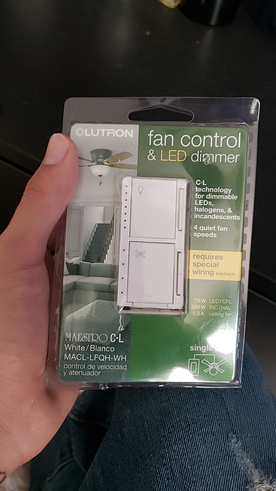 Lutron fan control and led dimmer switch "Never used" - includes wire nuts and instructions