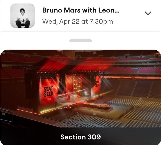 4 amazing seats for the Bruno Mars concert on April 22nd ( 309row G) 500$ each/ 4 entradas para Bruno mars 4/22/2026 $500 cada uno