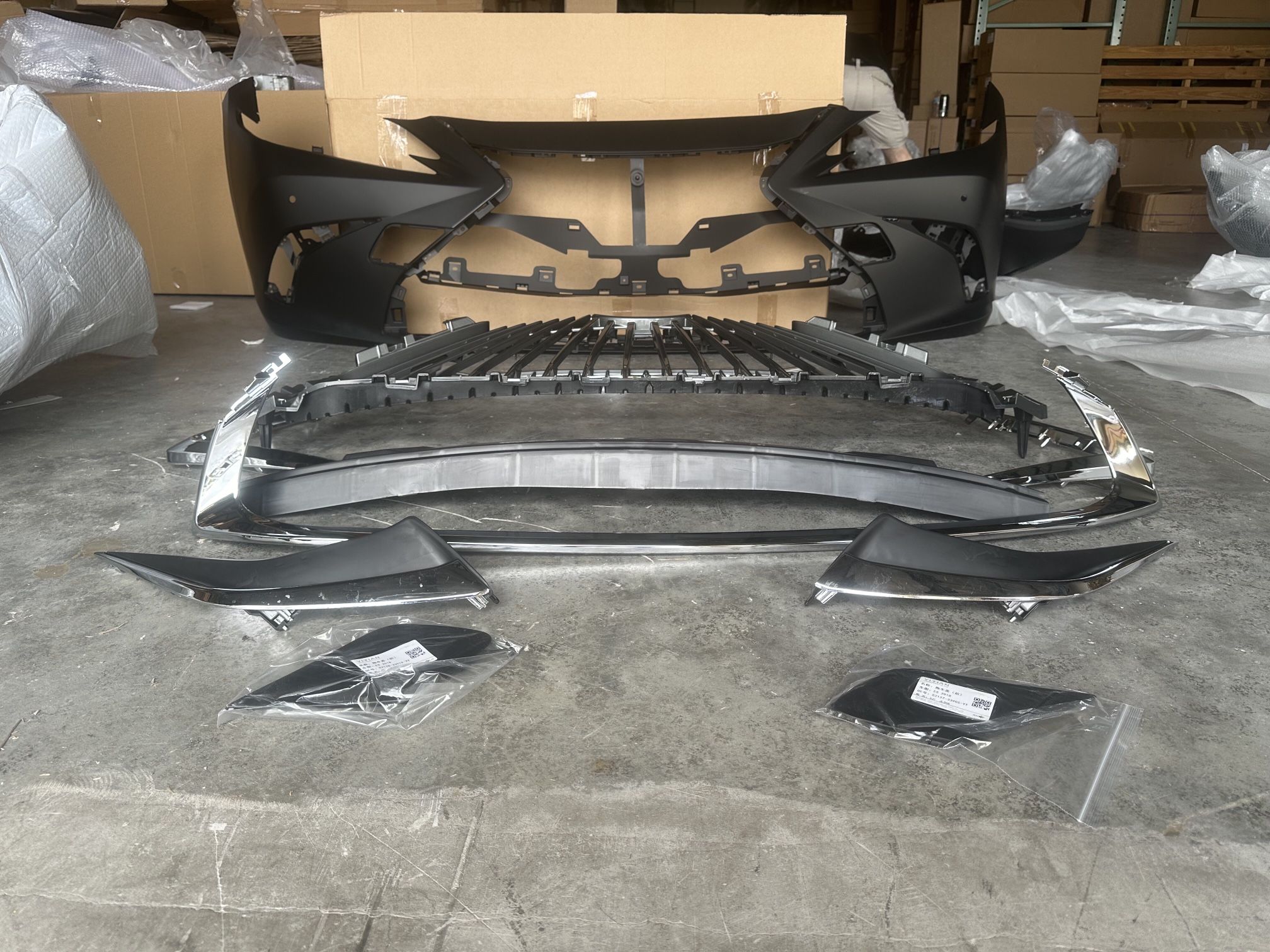 Complete Front Bumper Assembly With Grilles Fog Bezels And Chrome Trim Pieces For 2019 2020 2021 Lexus ES ES350
