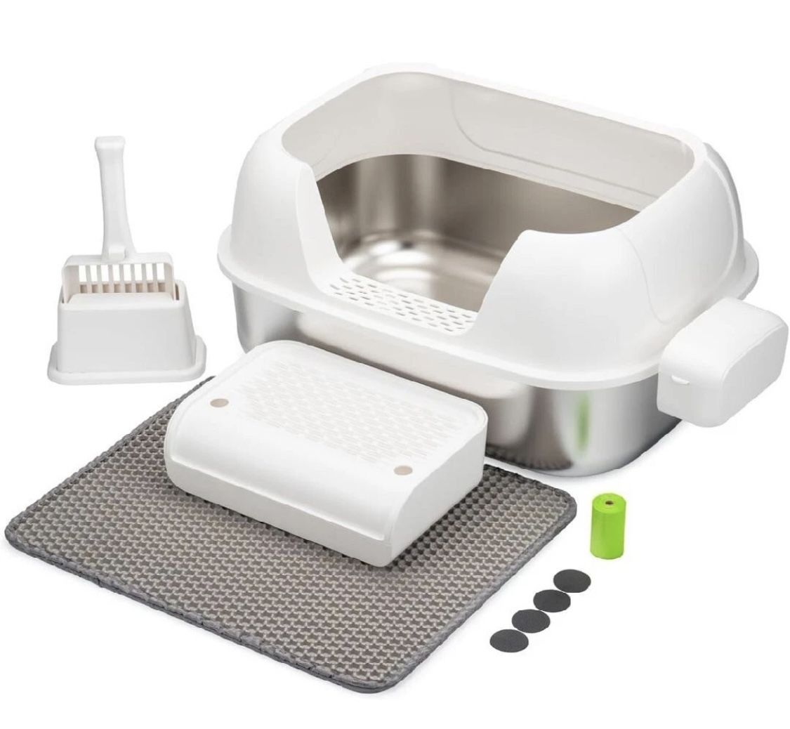 NEW Stainless Steel Cat Litter Box with Scoop and Mat and Foot Board New, Open Box 23.5" x 17" x 11.7"