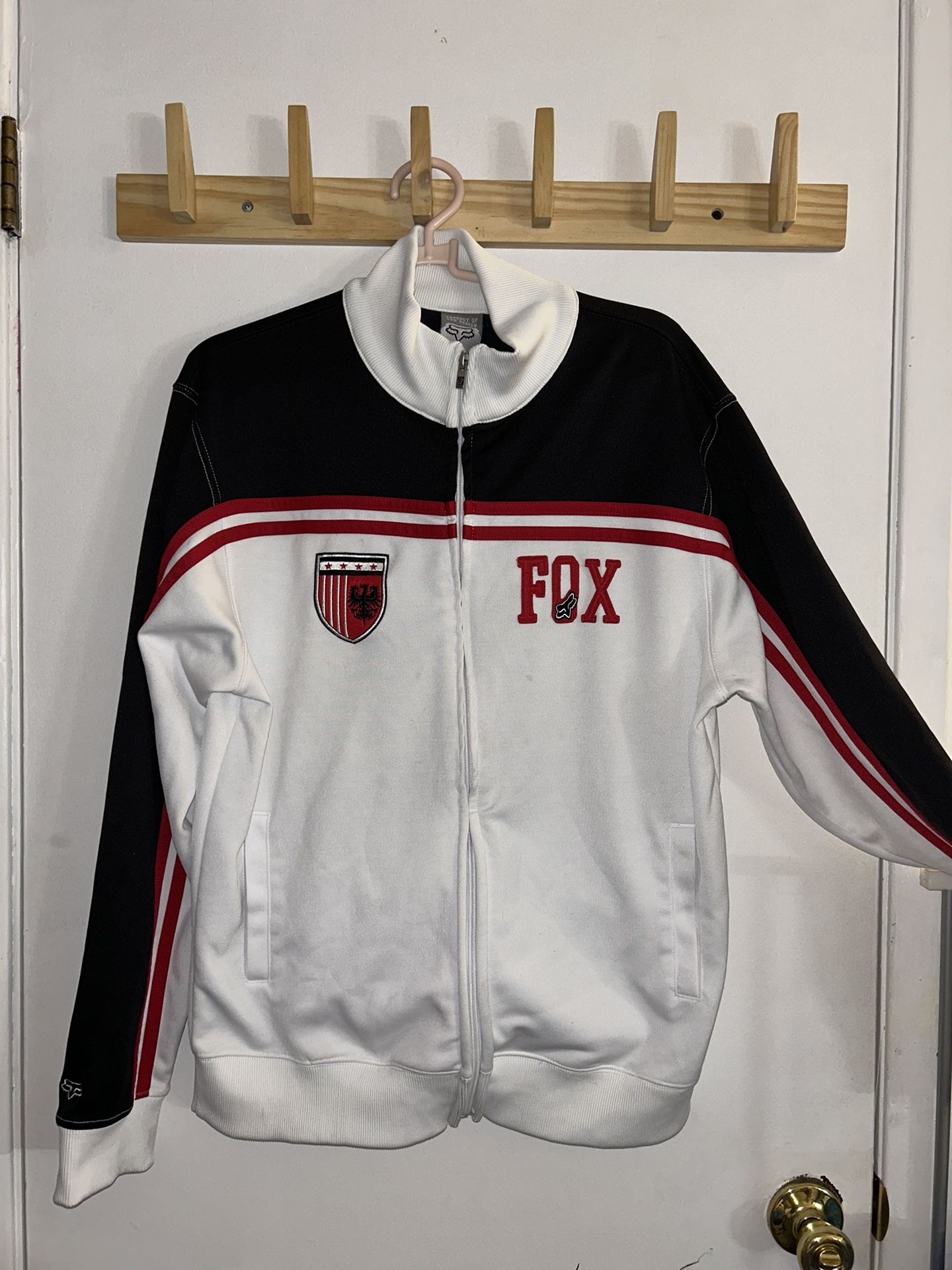 EUC Fox Motorsports Racing White Black Red Full Zip Track Men Jacket Sz L