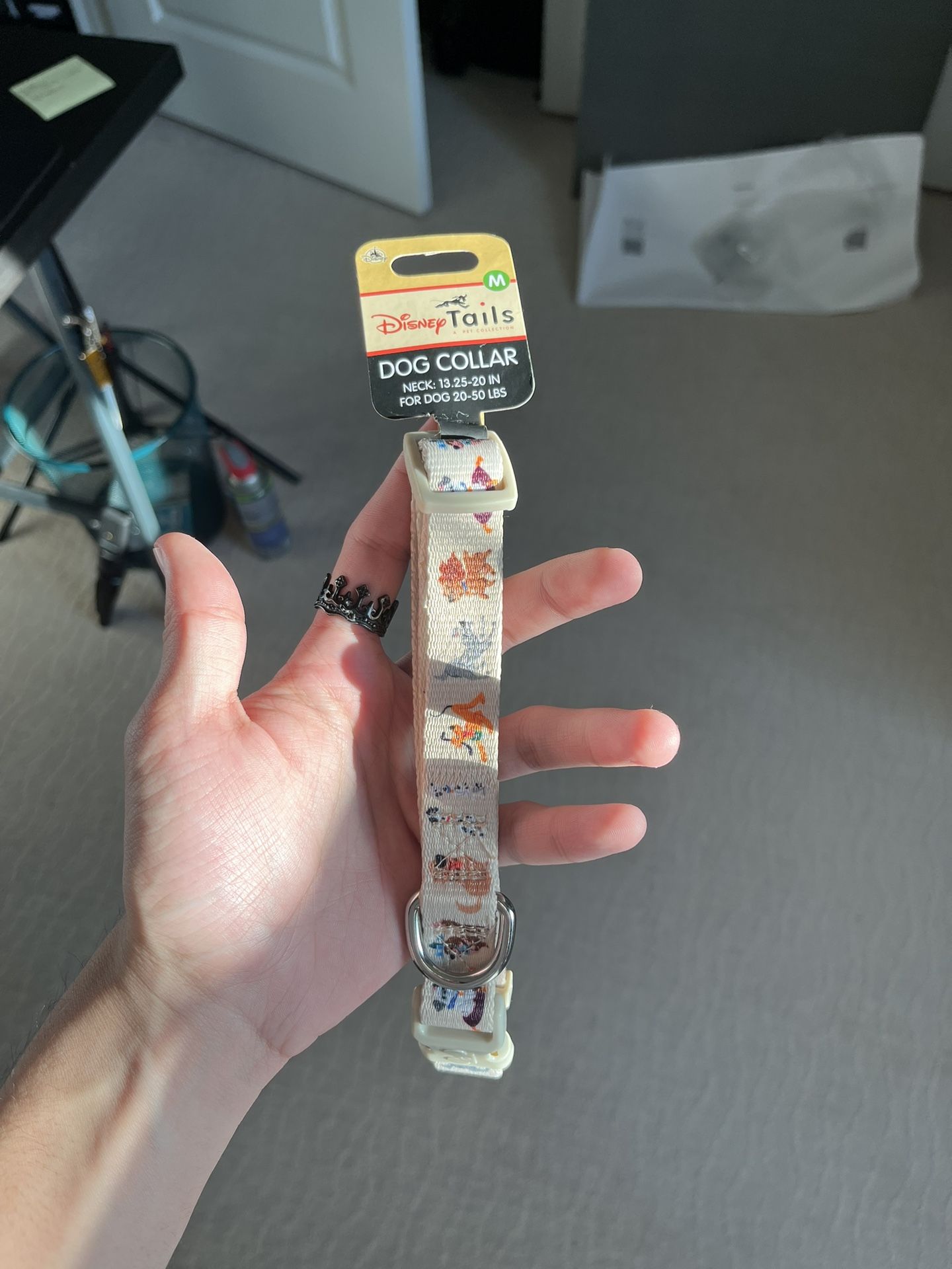 Hello! I bought this a while ago for my dogs birthday but it was unfortunately the wrong size and I couldn’t return it. It’s a size medium and fits a dogs neck from 13.5 inches to 20 inches. The lead is for dogs 20 to 90 pounds. If you have any questions, please ask me.