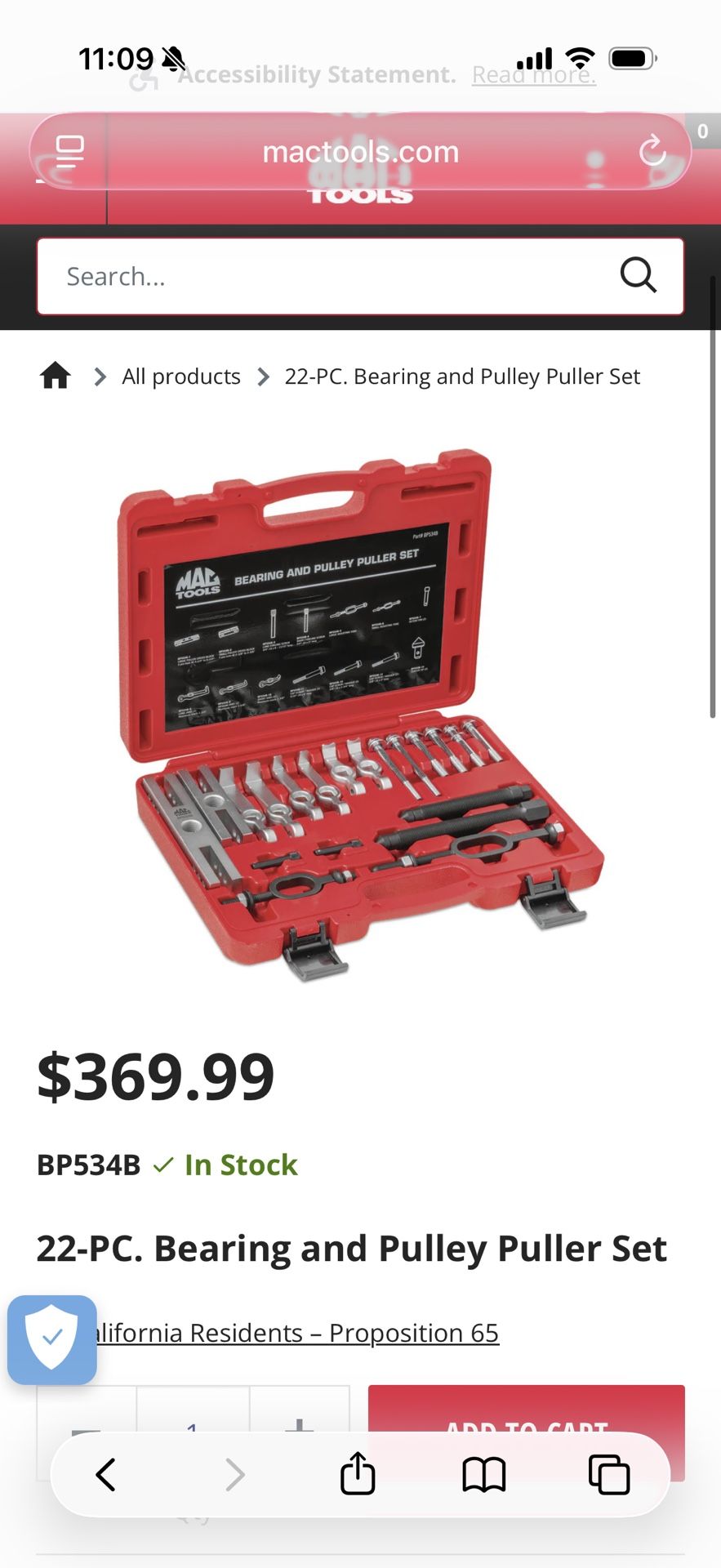 Like new MAC bearing and pulley puller set. Used less than 5 times no sign of use. New $400 Selling for $200