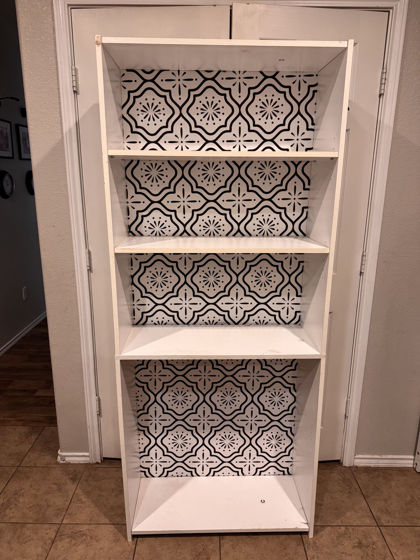 Bookshelf with black and white backing