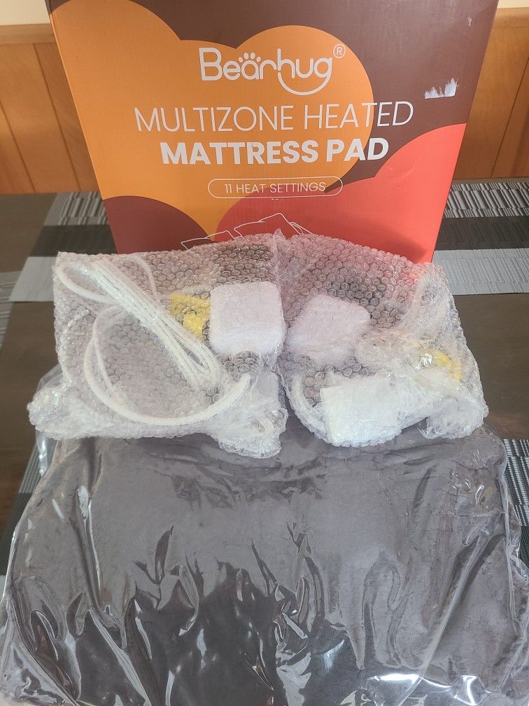 Brand new Bearhug heated mattress pad, Queen size. Factory vacuum-sealed - never opened. - Dual controls (control your own side) - 11 heat settings - Auto shut-off timer - Machine washable - Factory sealed Pickup in Wadsworth.