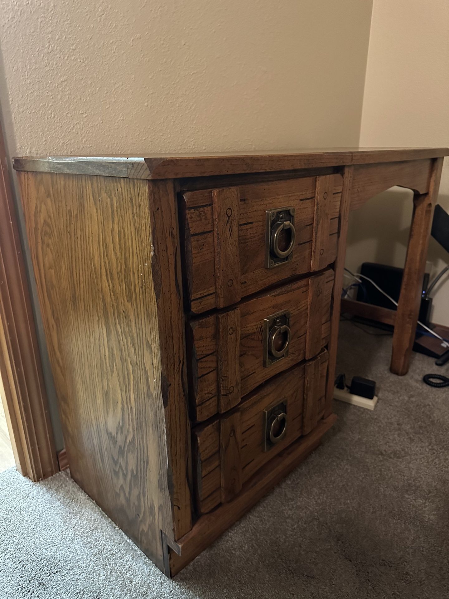 Selling an old wood desk. In great condition. Dimensions: (WxDxH) 44”x17”x30” We’re moving my grandmother into a smaller place and need to sell some of her extra furniture. I’ll be at her house tomorrow (Sunday, Jan 26th) to sell everything. Pick up only.