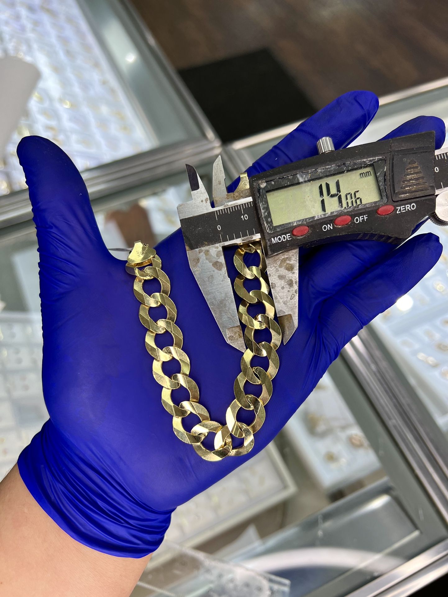 14K Gold Curb Link Bracelet ~ Solid ~ Width: 14mm Length: 9 inches Quality: Brand New ~~~~~~~~~~~~~~~~~~~~~~~~~~~~~ Lesley’s Jewelry 11 N State St Elgin, IL 60123 United States Monday- Friday 10am-6pm