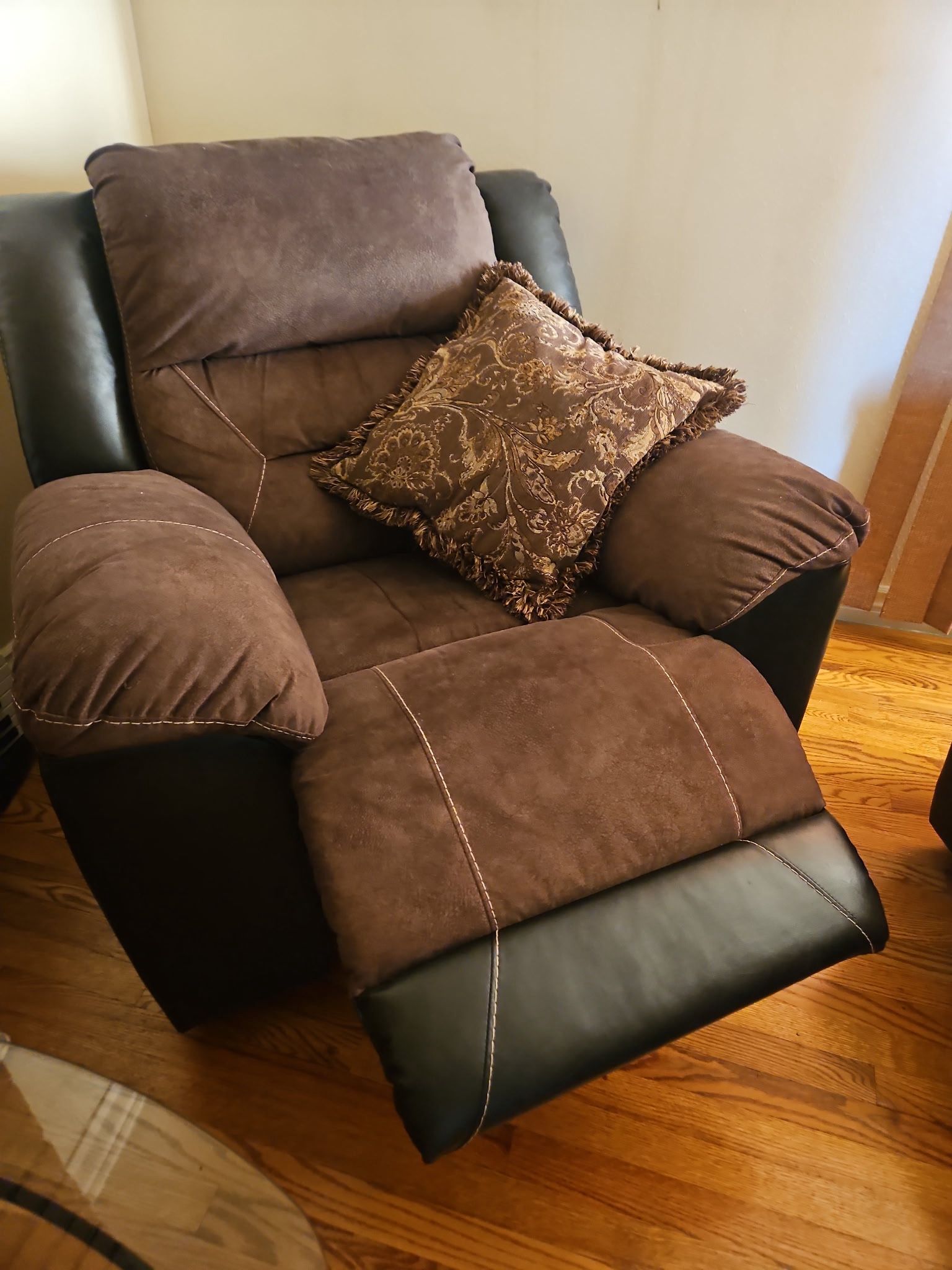 Great condition, two piece set, reclining couch and chair. Pick up only