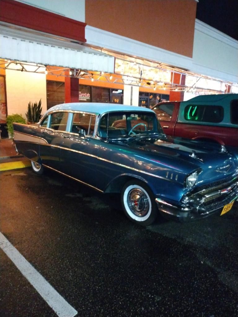 1957 Chevy Bel Air, Four door hard top. 327 Harley engine four barrel carburetor, 350 automatic transmission .New carpet and radio. Everything else is original,continental kit vantage. AC. Running great in excellent condition.