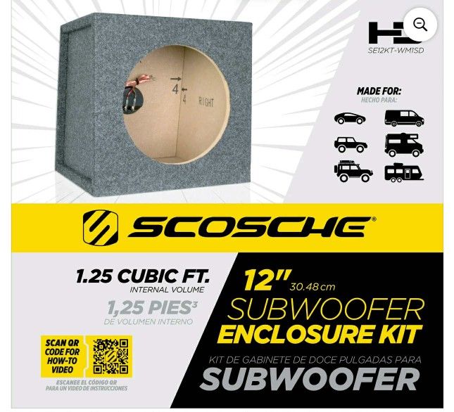 Scosche SE12KTSD Build-Your-Own 12" Subwoofer Enclosure (Single Subwoofer) New, Open Box !! $30 dlls I-TOP Auto Supplies and Accessories 647 Horizon Blvd. Suite A Socorro, Texas 79927 (contact info removed)