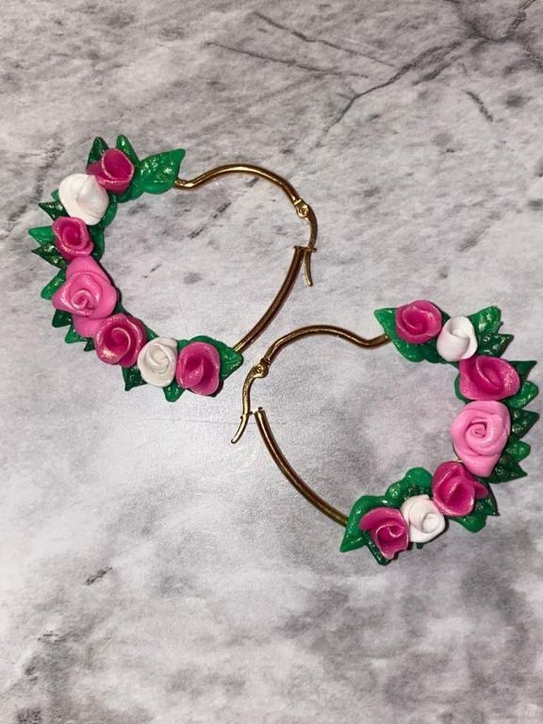 Beautiful flower heart shaped earrings. Flowers made by hand just have this one available.
