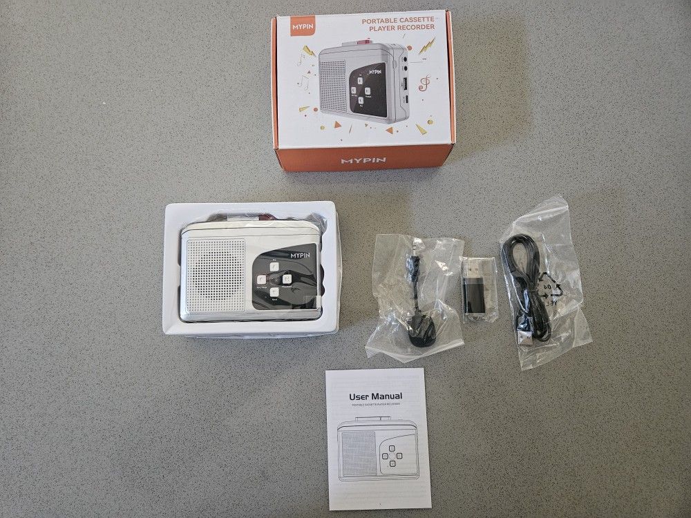 Open box. Never removed from shrink wrap. Converts Cassette To MP3 Via USB Flash Drive. Built-in Clear Speakers & Earphone Jack. Supports Microphone Recording To Tape.