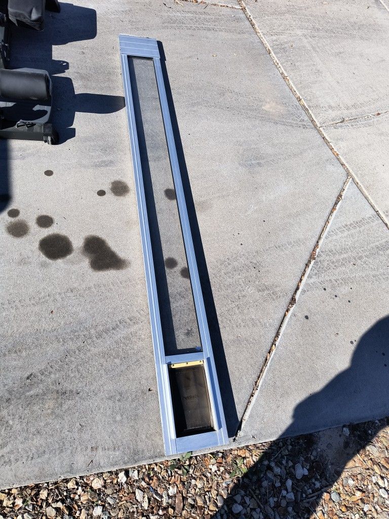 5x8 inch opening for pet. 77-80 inch tall for sliding door. You will need adhesive foam for the sides of the door.