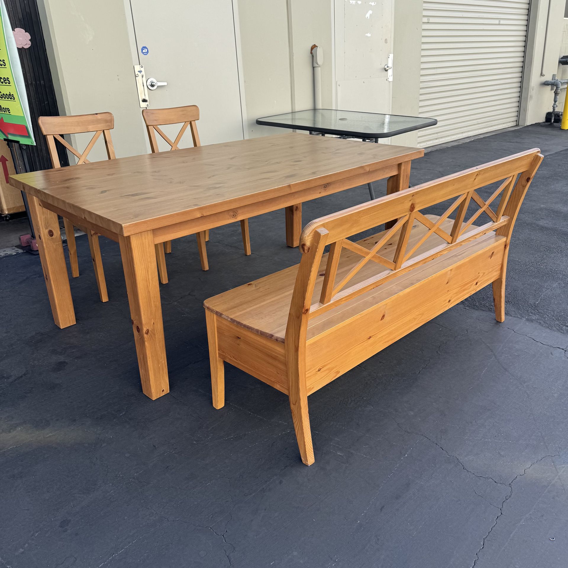 IKEA FORSBY Solid Wood Dining Table with Storage Bench and 2 Chairs Good Condition Table 71”W 39.5”D 29.5”H In the store, easy to pick up No low offers please A lot of furniture and other items are available, check out our listing And there are a lot of items other than the list, visit our store to check out our items New items arriving everyday! Follow us on OfferUp @Syuu You and@Re Secondhand Facebook @Re Secondhand Instagram@syuu_you to get new arrival items information