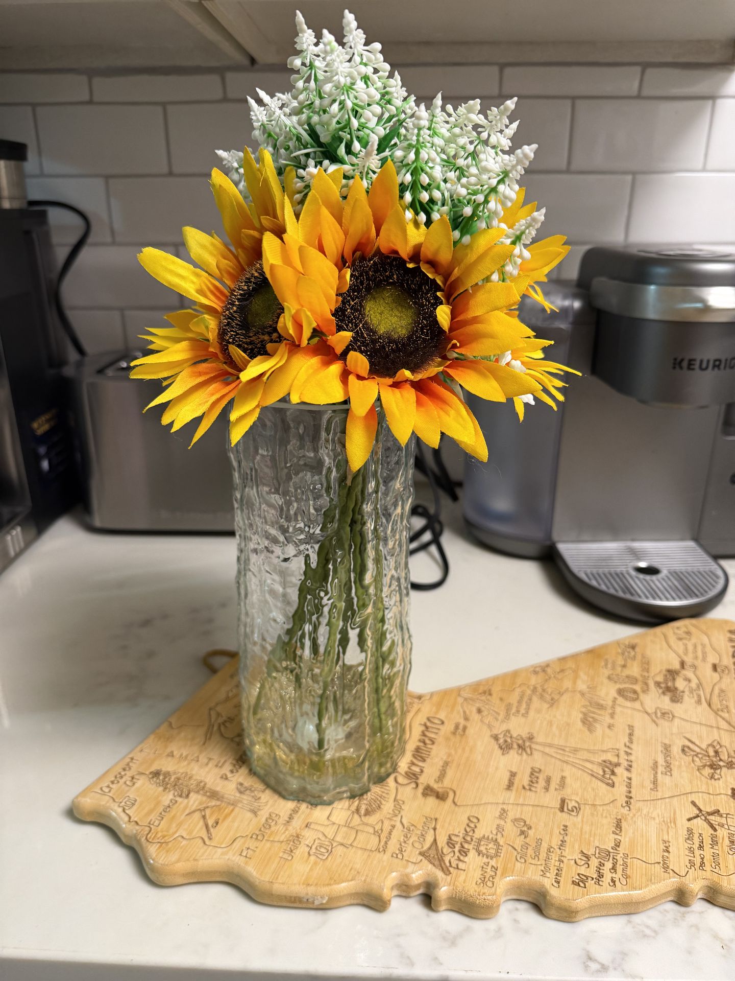Sunflower in large vase with greenery 17 inches tall