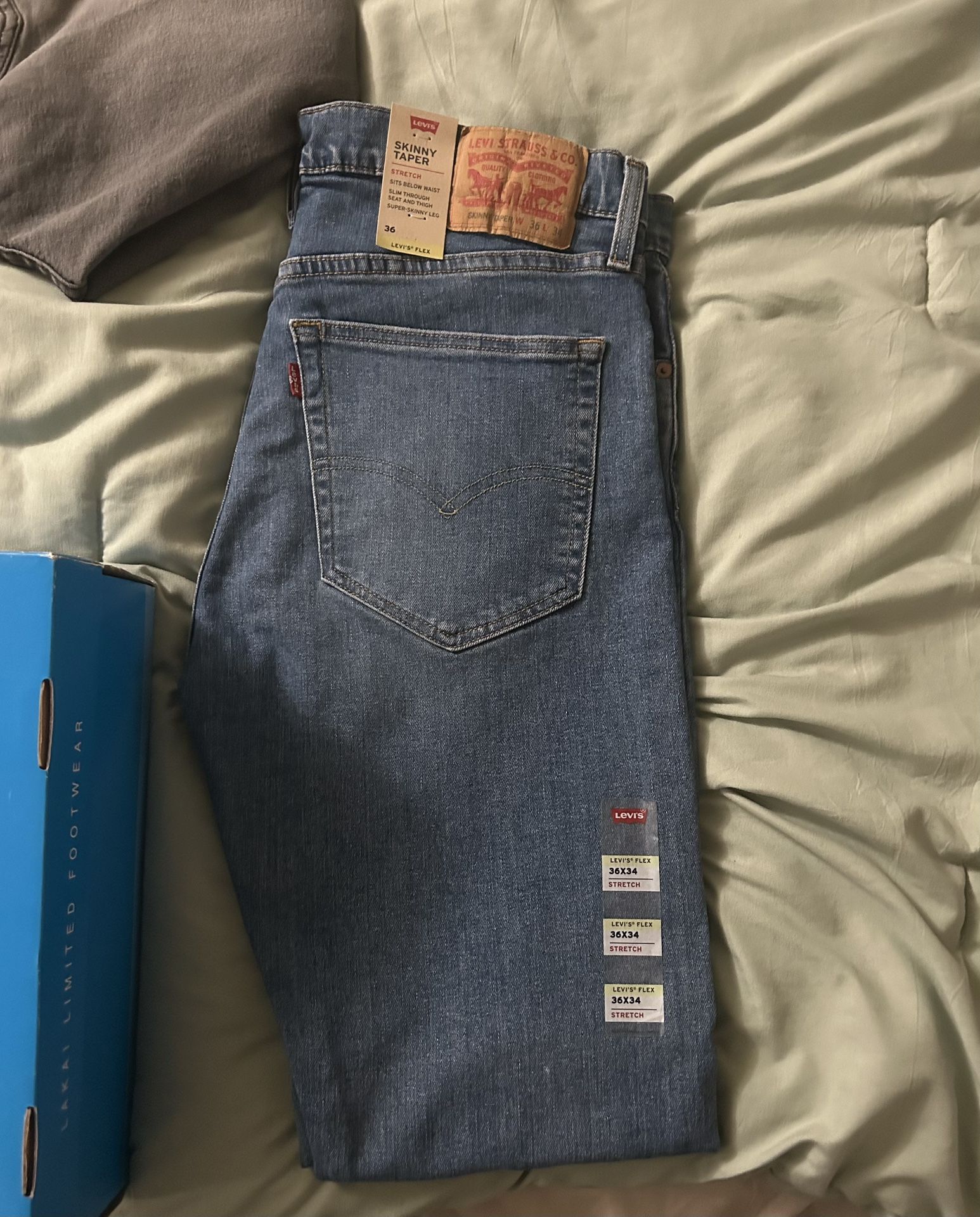 These Skinny Taper jeans look like a skinny without feeling like one, thanks to innovative stretch technology. (Levi's® Flex is engineered to deliver maximum flex and comfort.) Plus, the modern tapering gives you that put-together look—without the trip to a tailor. Skinny, tapered jeans with added stretch Narrow leg opening for a truly modern silhouette We infused the horizontal ("weft") threads with advanced stretch technology—so these jeans have extra give and flexibility, without getting saggy or baggy $20 or best offer