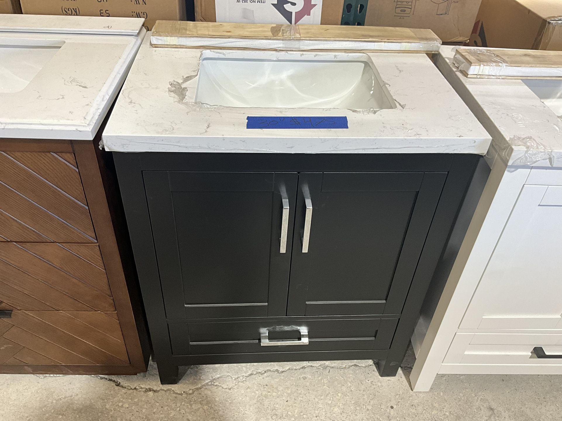 30” Bathroom Vanity in black , single sink soft close solid wood with vanity top in white $475 Luke’s liquidations warehouse Address: 2434 N Forsyt