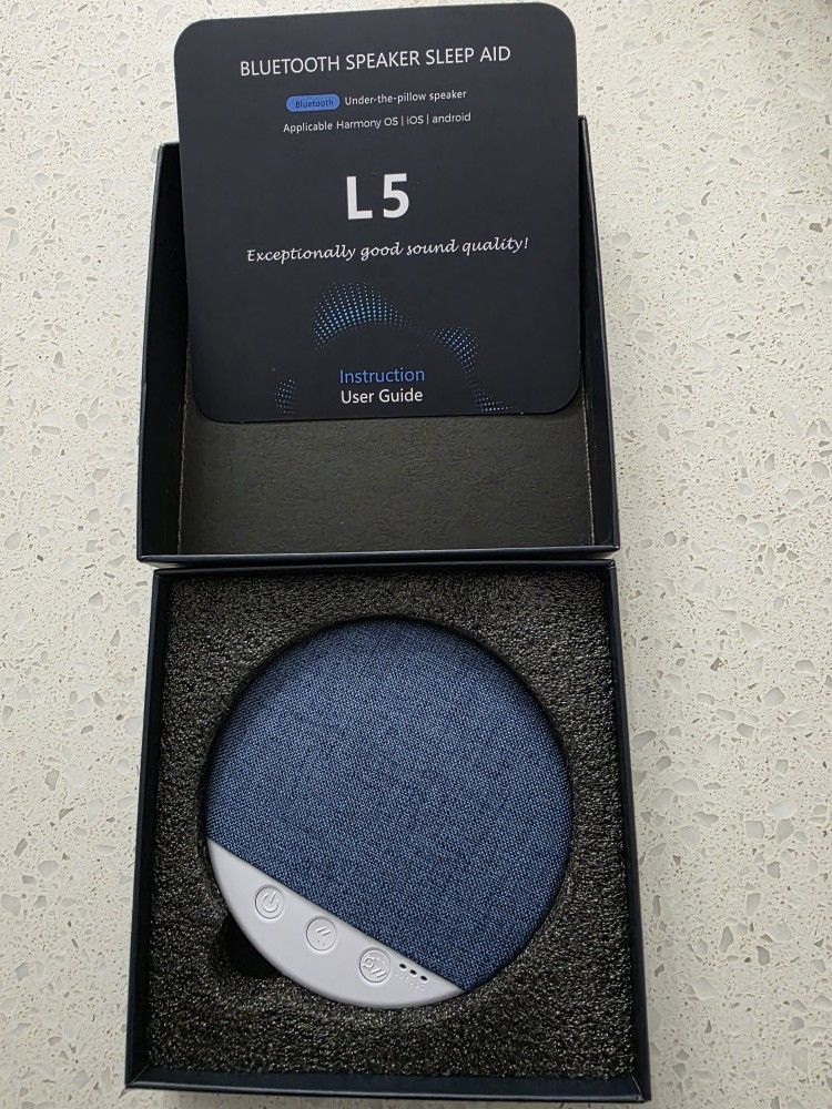 Brand New In Box Ultra-Thin for Side Sleepers: Designed with a slim 12mm profile and soft cotton-linen fabric, this under pillow speaker slips unnoticed beneath your pillow. Built-in White Noise & Auto-Off Timer: Drift off easily with built-in nature sounds (Ocean, Stream, Birds) or your own audio. Features a 30/60/90-minute timer that automatically shuts off.