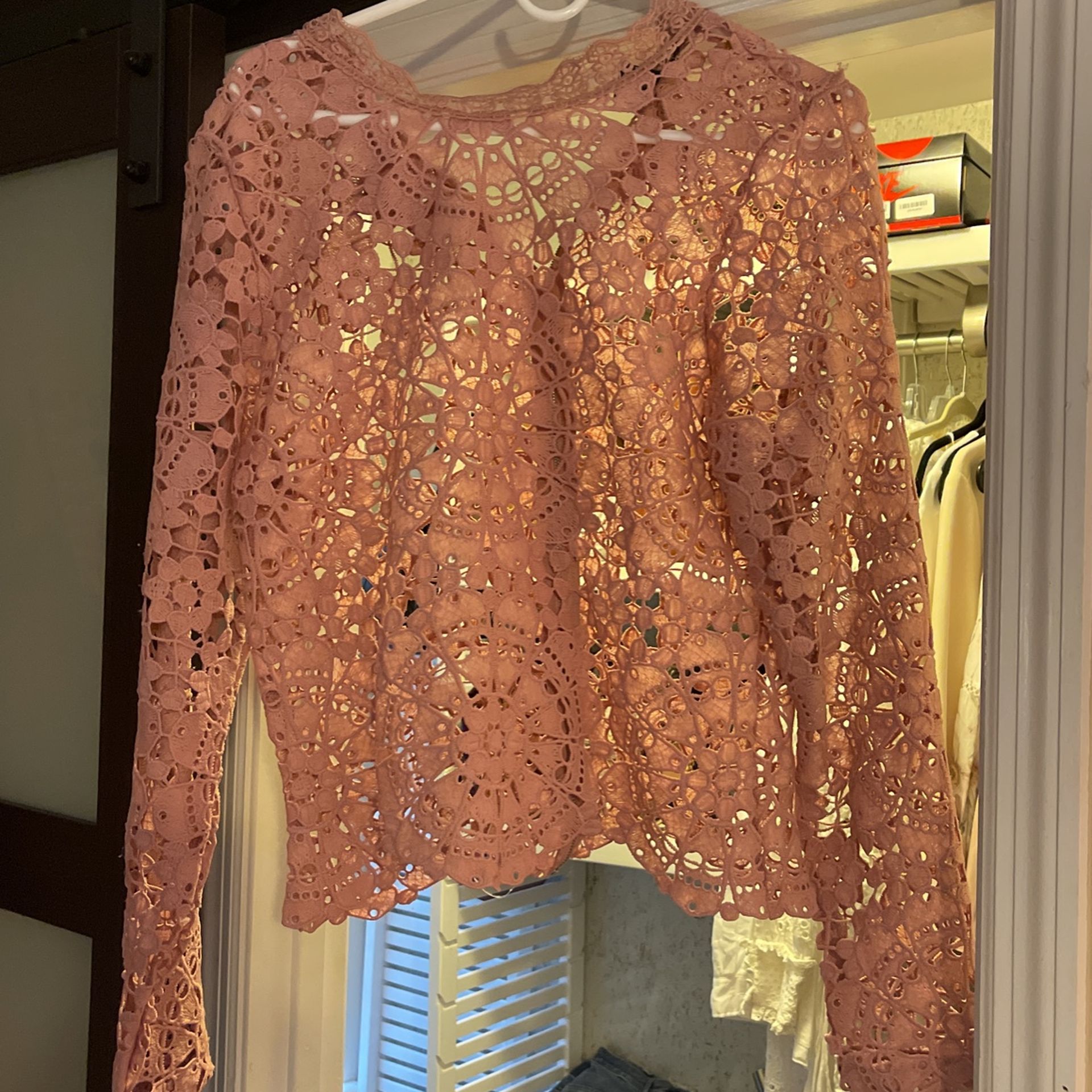 Worn Once. Pink Lace Shirt. Full Zip Up Back
