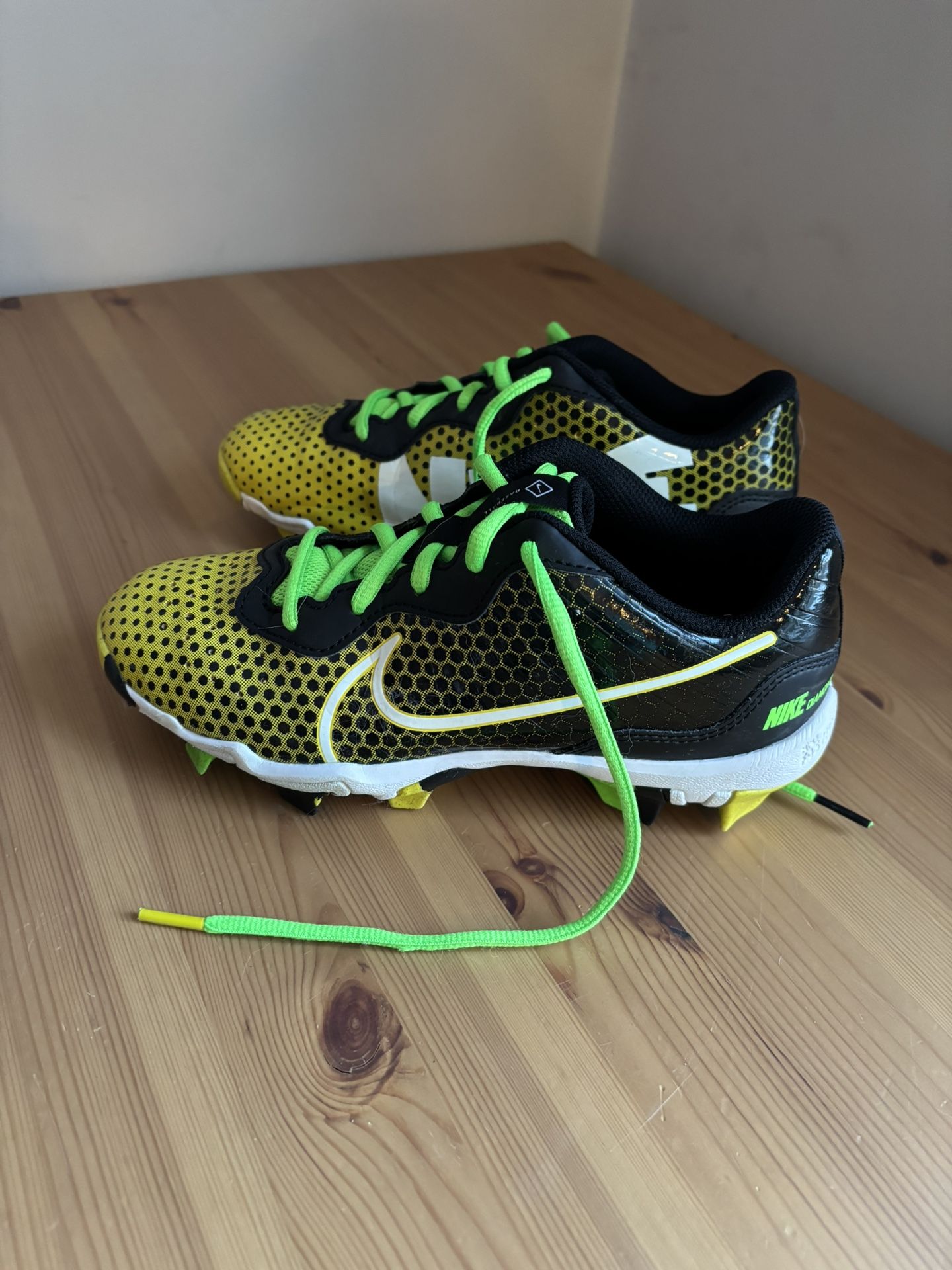 Nike Diamond Fast Flex Baseball Cleats Youth Kids Boys Size 4 Y Black Green Gold