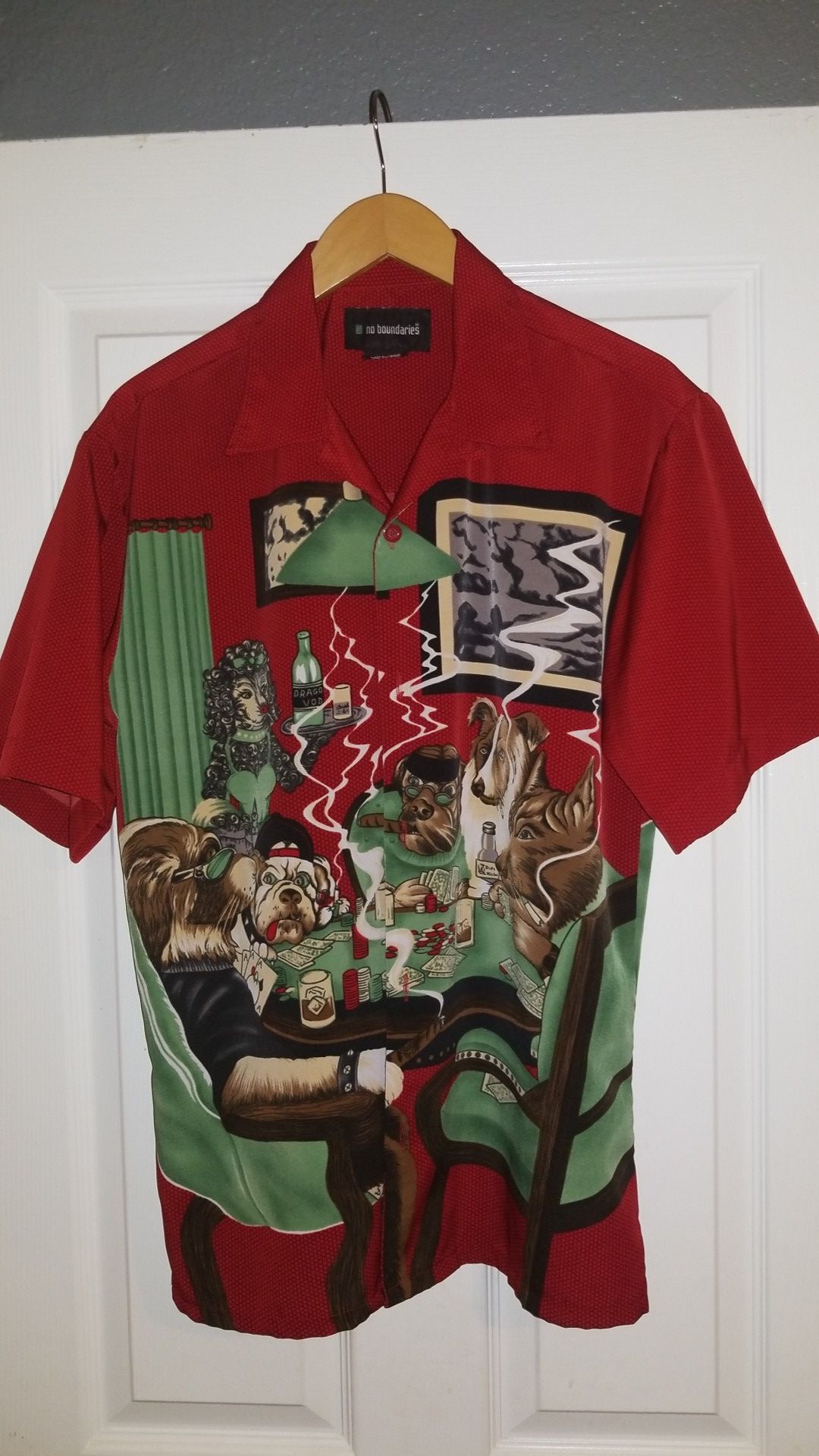 Mens small medium 34/36 poker playing dog button up shirt
