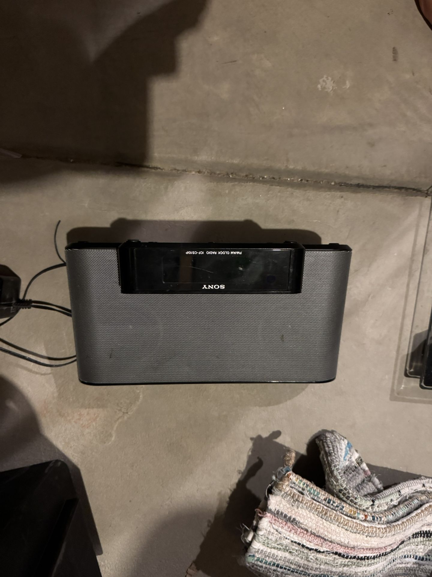 Collecting dust an old iPhone/ipod radio by Sony. Works great for auxiliary input.