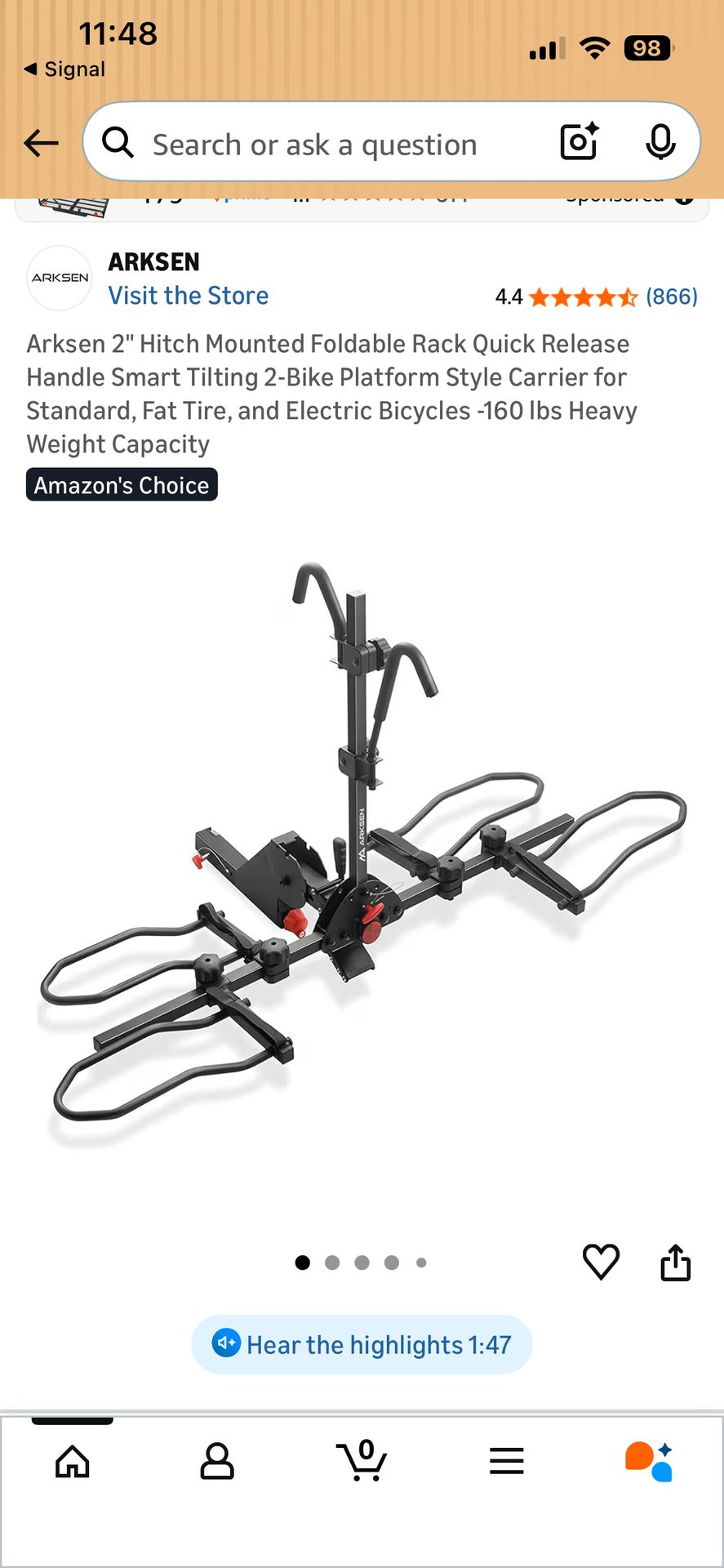 Brand new, opened box to check fit. All parts present. Unable to return to seller. Willing to re-sell at discounted price. Bought for $140 on amazon. Pick up only Platform style bicycle carrier with smart tilt. Fits 2” receiver, 150lbs total capacity for standard, fat tire & electric bikes.