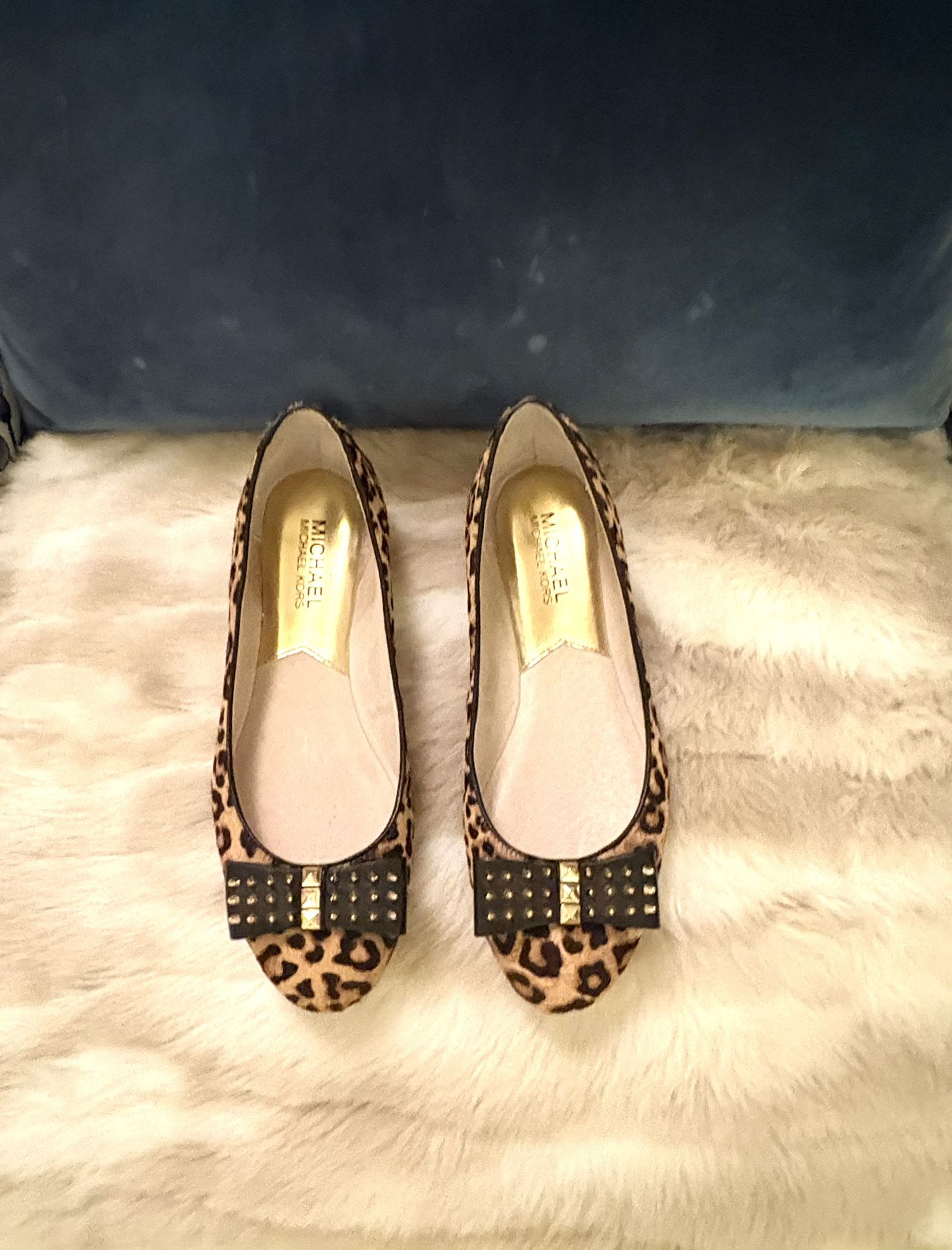 Michael Kors Devin ballet flats in leopard print and calfskin, size 6.5