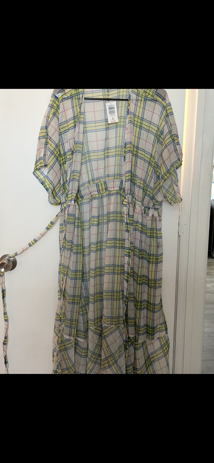 Never worn, tags still on. Thin material cinch waist kimono B5