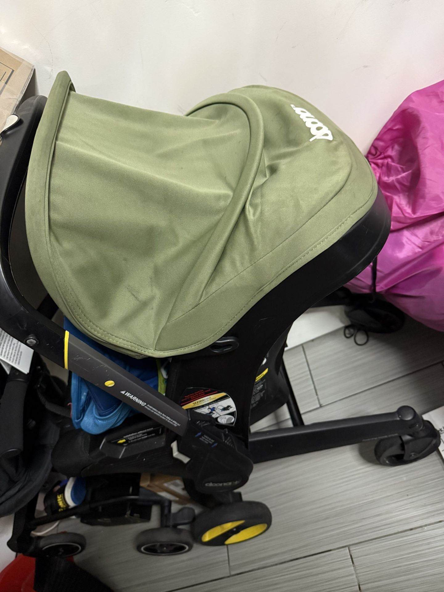 Hunter green Doona stroller car seat. Comes with car base as well. Detachable pieces and can be easily washed, slightly dirty from storage. No infant head rest