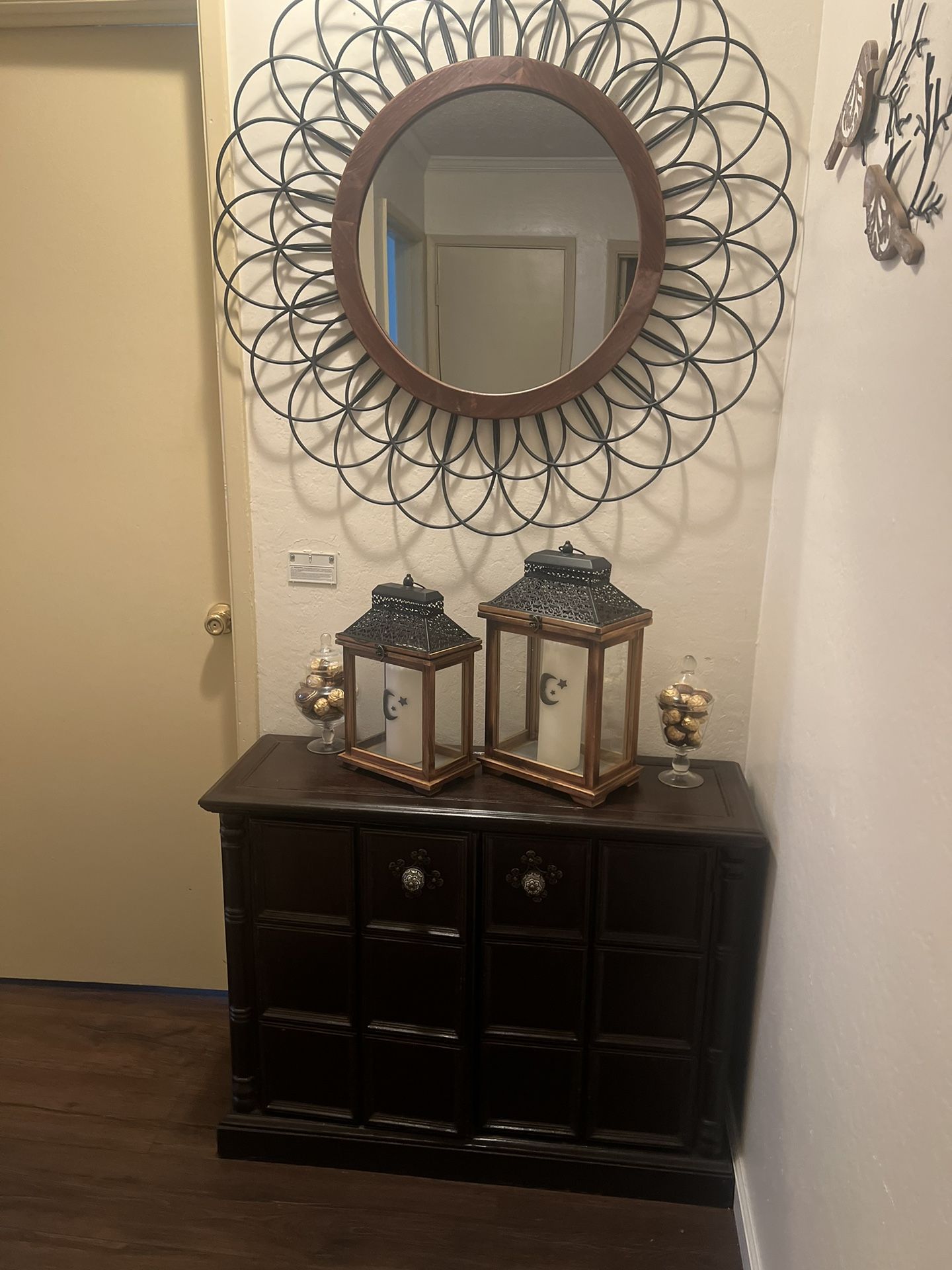 Hobby Lobby mirror and wooden cabinet for sale $100 for both Or $50 for the mirror $60 for the cabinet