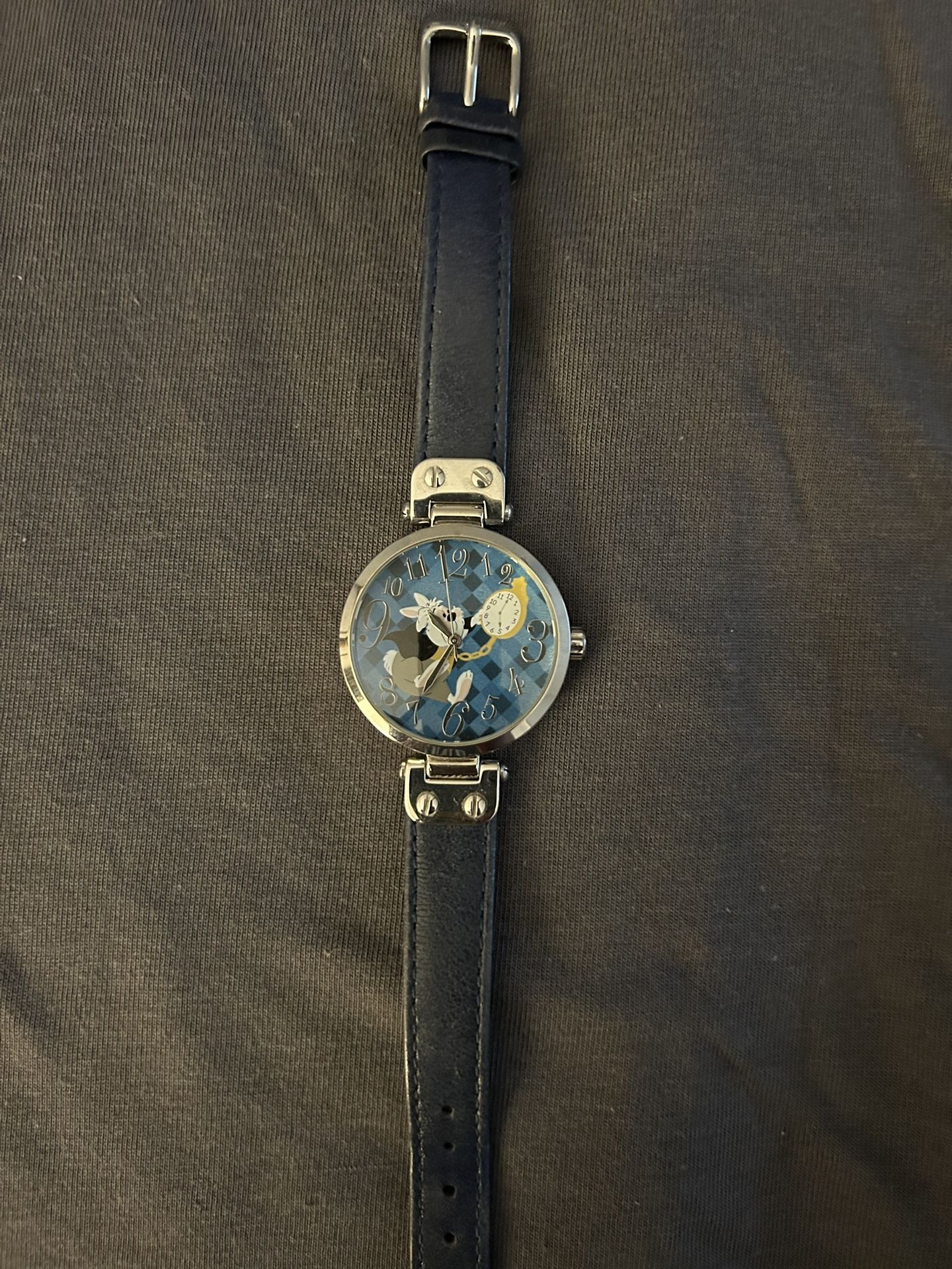 Women’s Alice in Wonderland Watch featuring white rabbit from Disneyland. In great shape just needs a new battery.