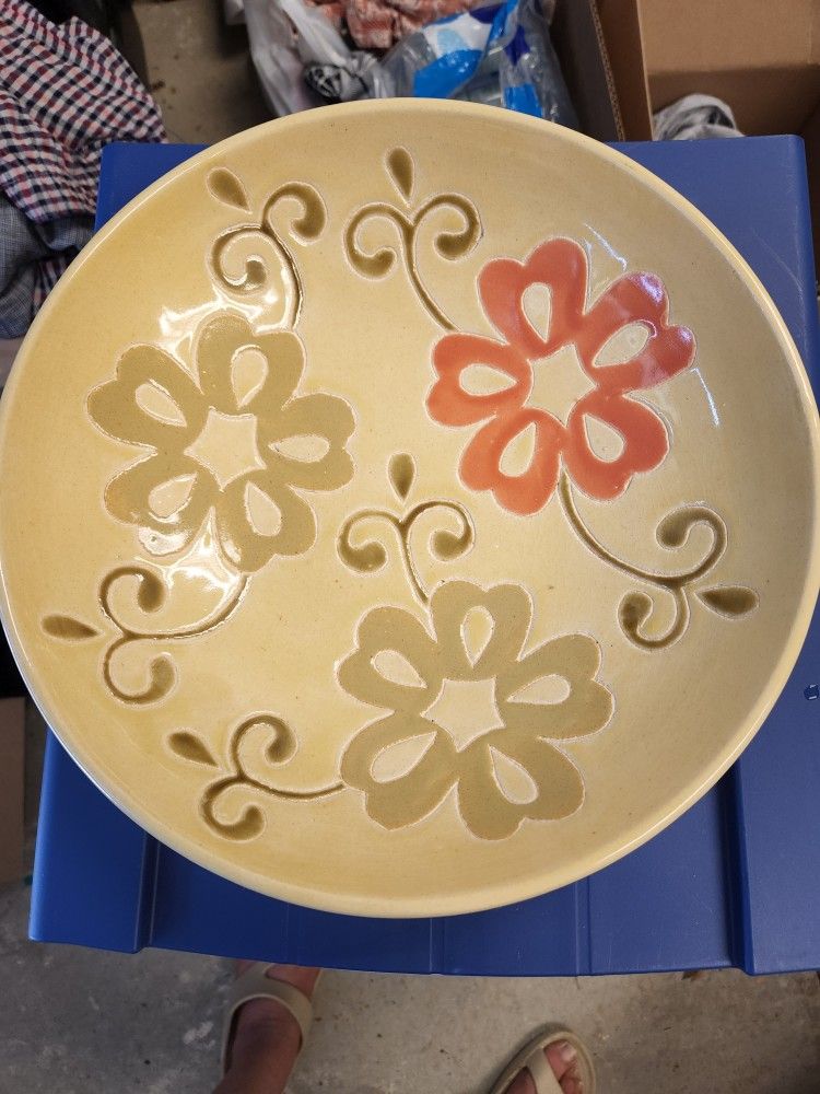 Purchased at furniture store large heavy bowl crackle glass olives irange and a yellow color