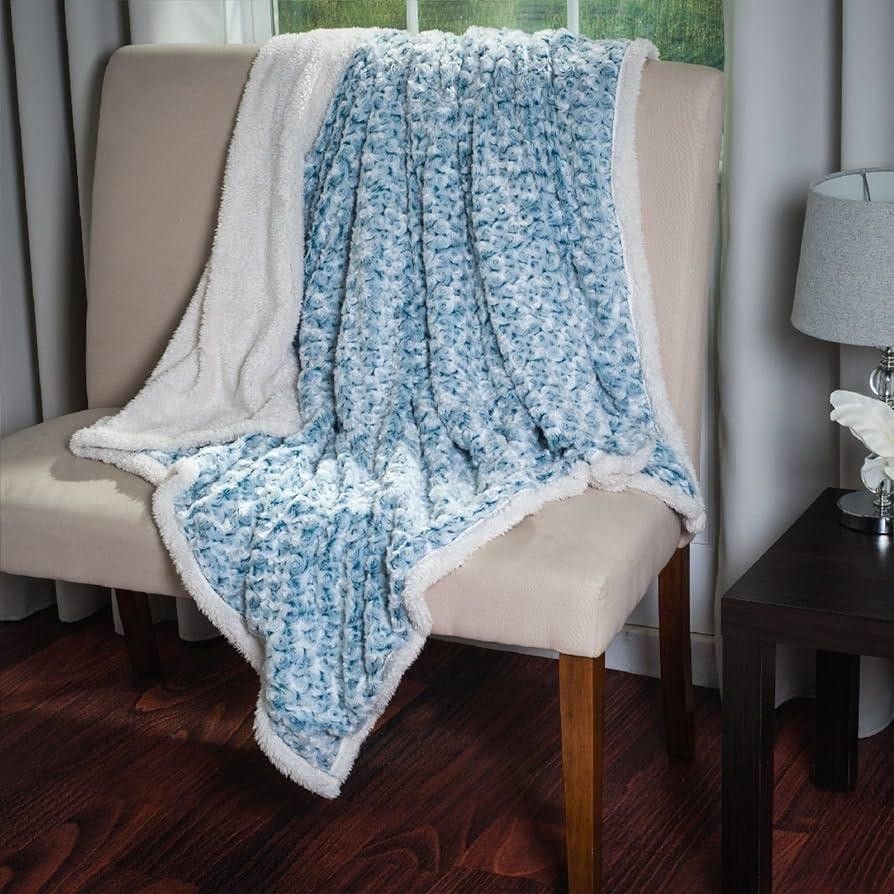 New Aqua Blue Swirly Sherpa soft Fleece Throw Blanket