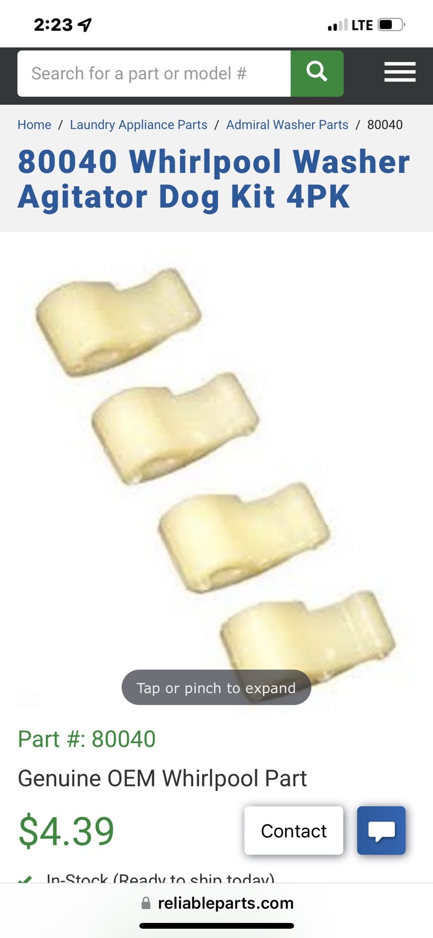 Whirlpool washer dog agits, will fit many models, like whirlpool, Maytag, kenmore! We carry appliances parts, ask for details!