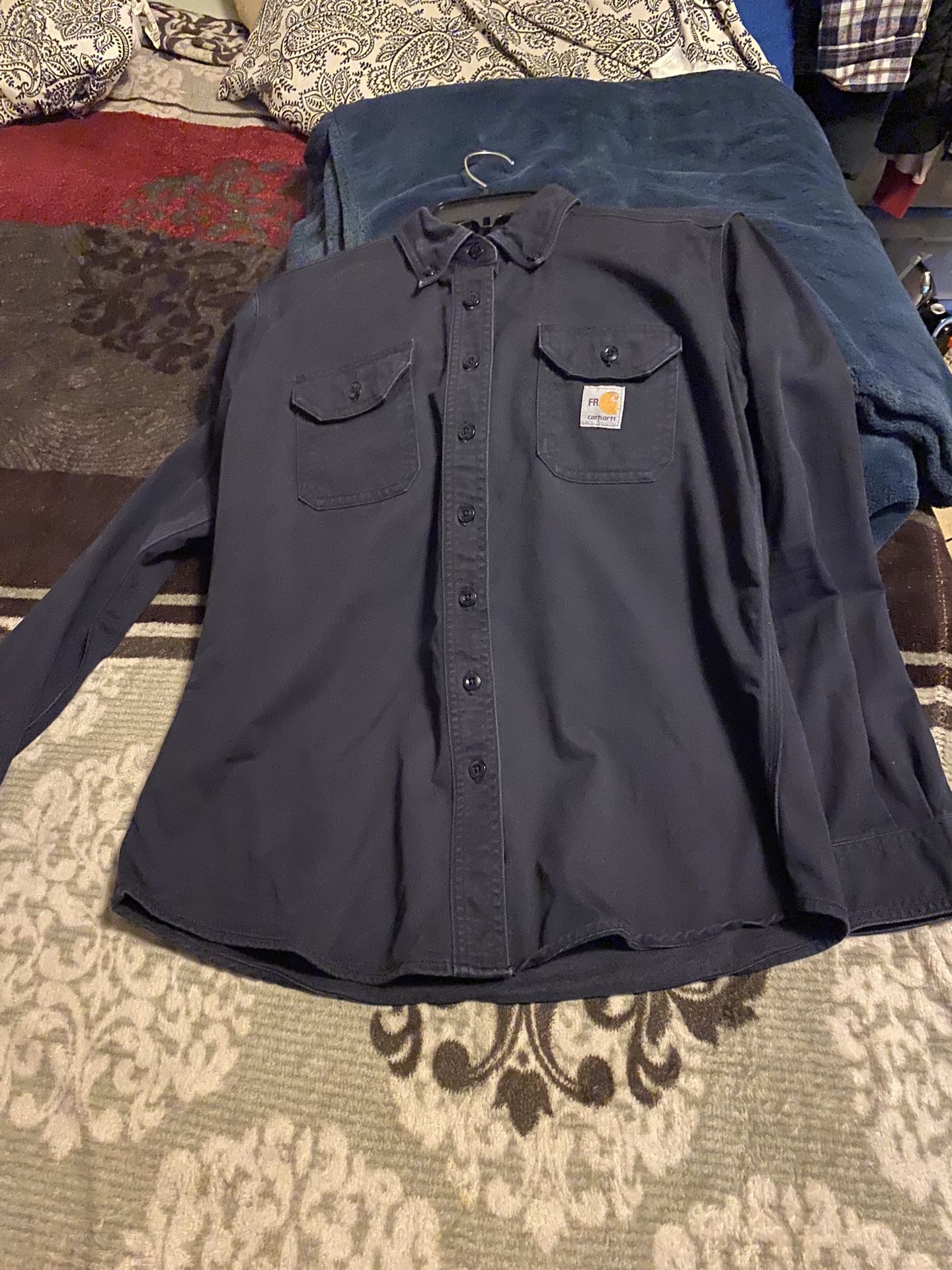 CARHARTT MEN'S FR SOLID LONG SLEEVE BUTTON-DOWN WORK SHIRT 2112 CAT 2 Size S