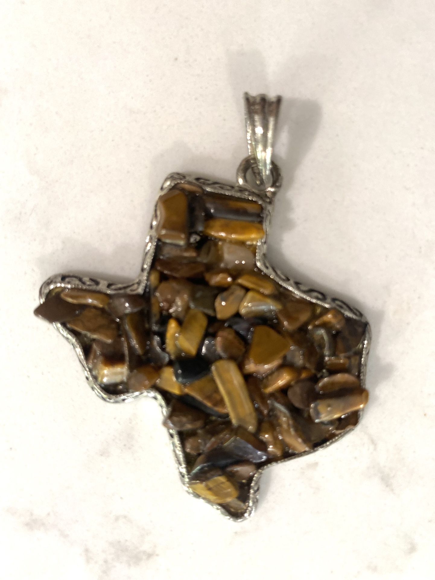 Vtg Costume Jewelry State of Texas / Pebbles Pendant - Brown