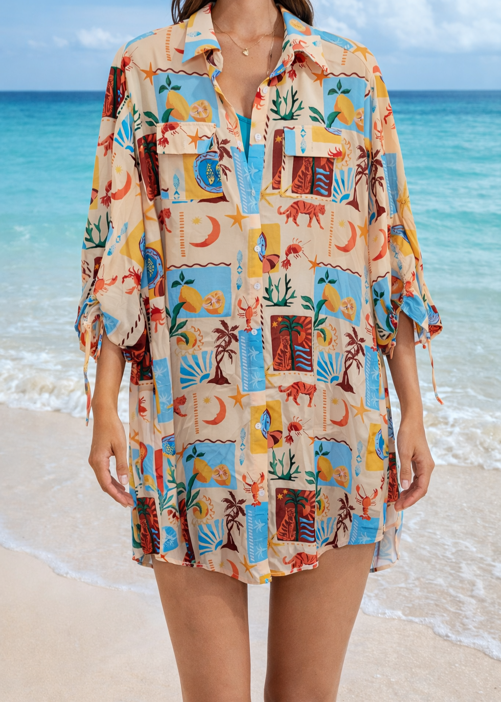 Beach cover up/ tropical shirt dress. Size S, 100% polyester. Brand new, with tags on $59. Zelle/Venmo/Cash. To check pick-up location, googlemap: Clovis and Camden Ave.