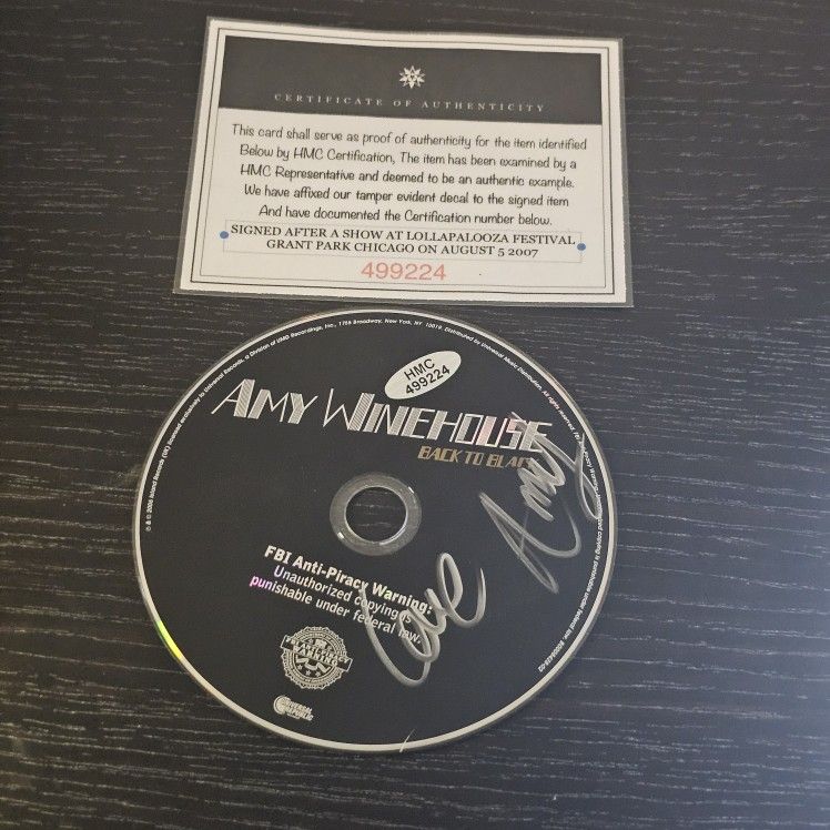 Amy Winehouse CoA Live Signiture. Back To Black Valerie. "Love, Amy." C.d. Only.
