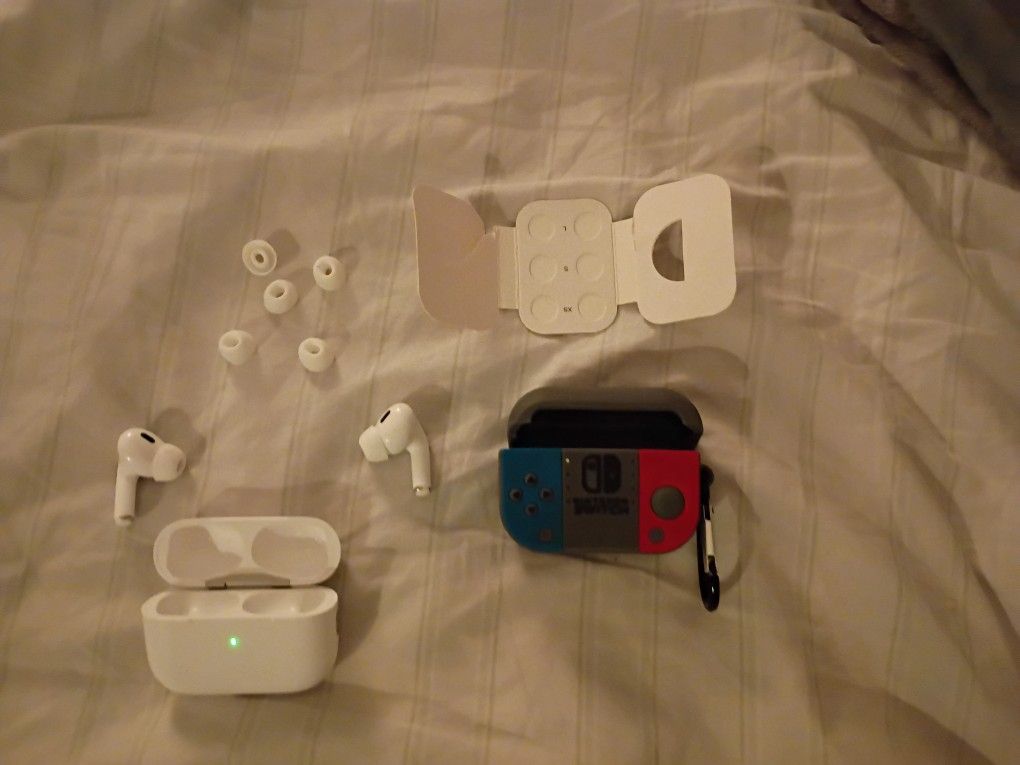 Airpods pro 2 en perfecto estado incluye sus repuestos y todo incluye carcasa de nintendo switch solo usados 4 veces (Contácteme) acepto cash y zelle y solo local pick up
