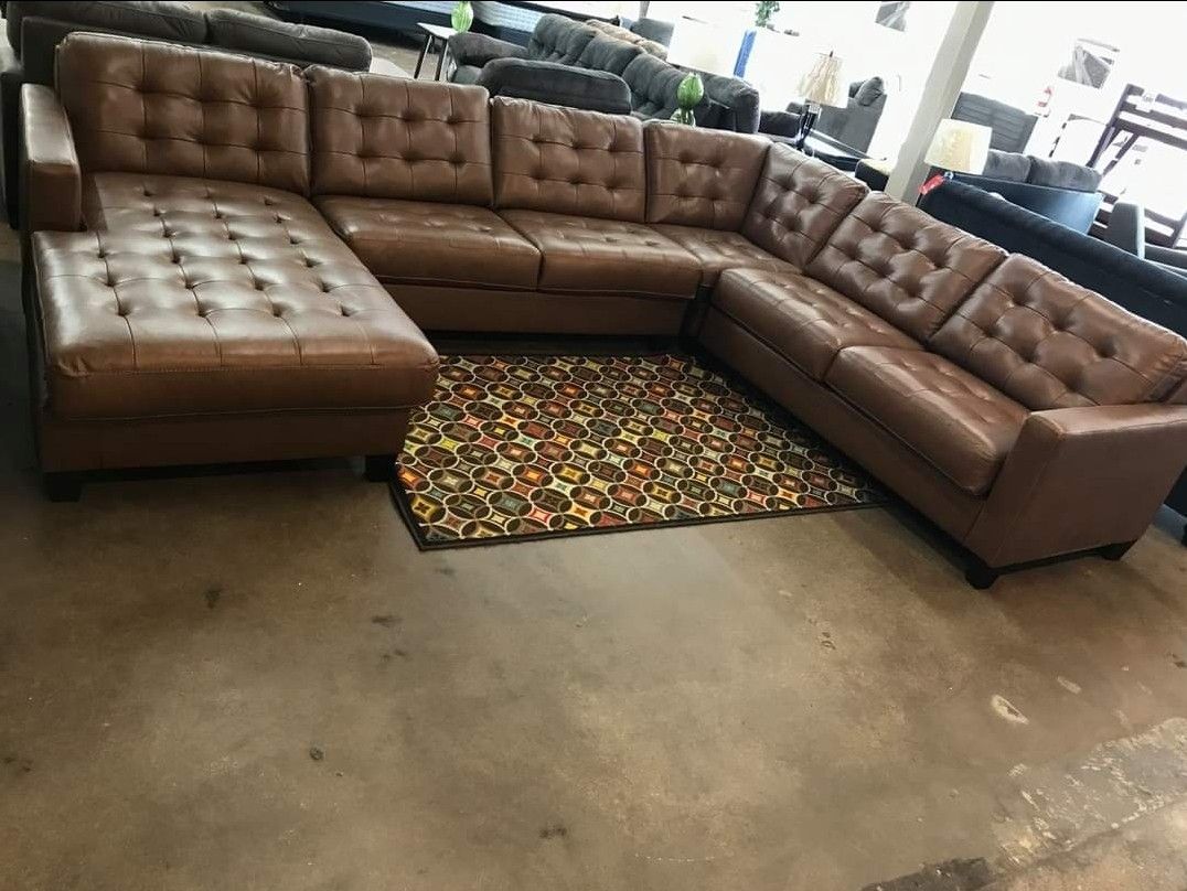 Brown Leather 4 Piece U Shaped Large Sectional Couch π₯ Brand New
