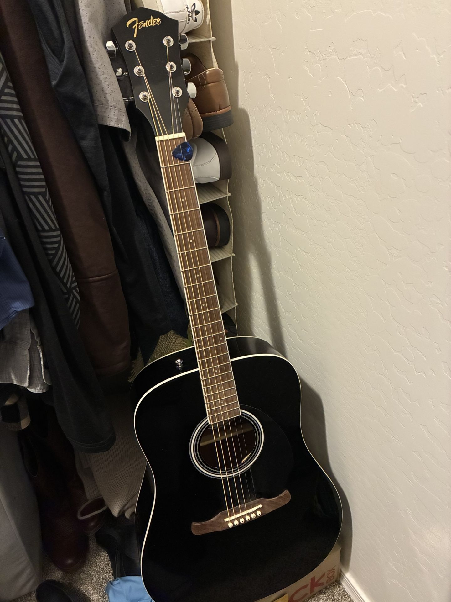 Fender guitar, new strings, comes with traveling case, strap, and picks.